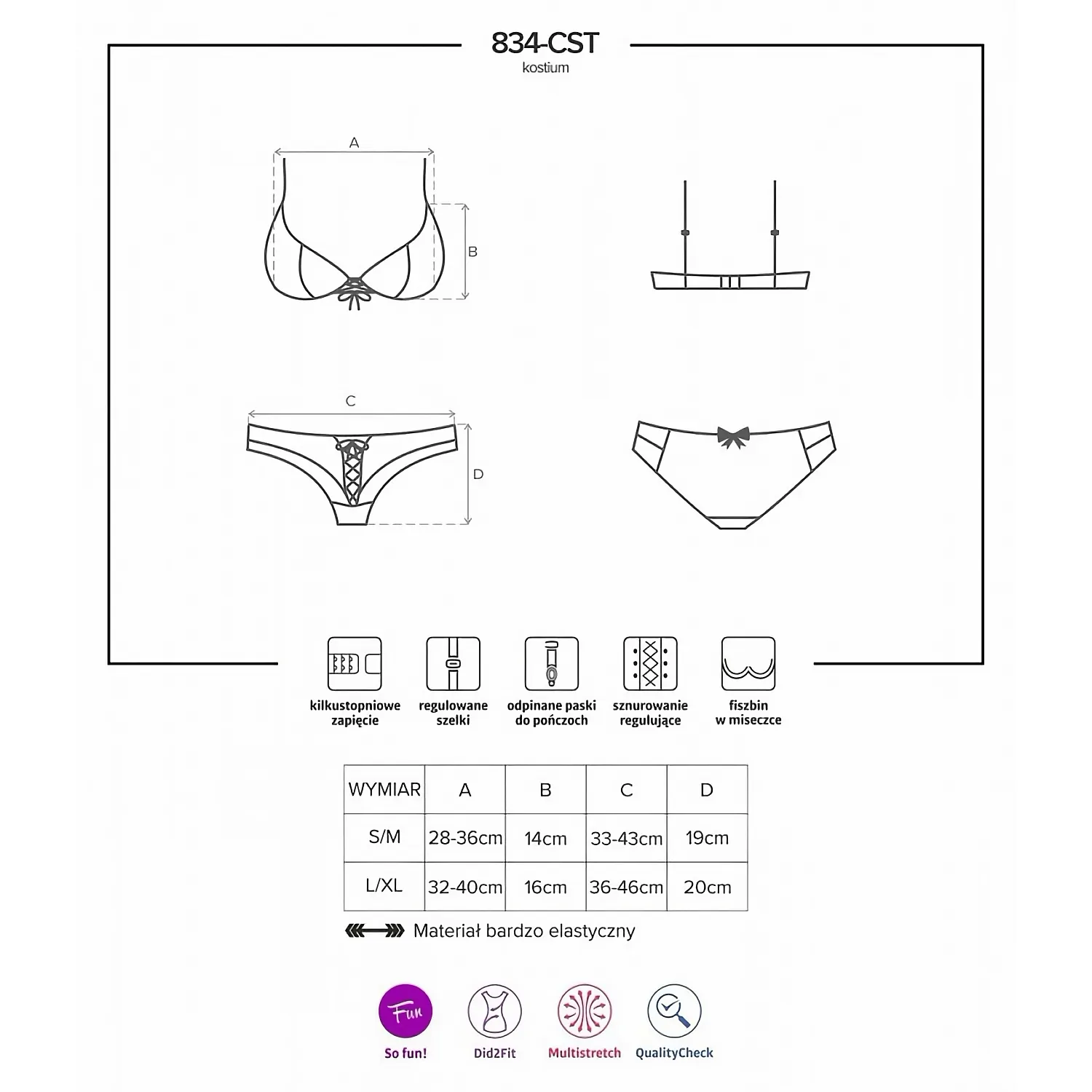 ținută Obsessive 834-CST Turcoaz este un articol de lenjerie uluitoare și exagerat de fermecătoare, desenată și fabricată de prestigiosul brand de lenjerie Obsessive din Polonia.