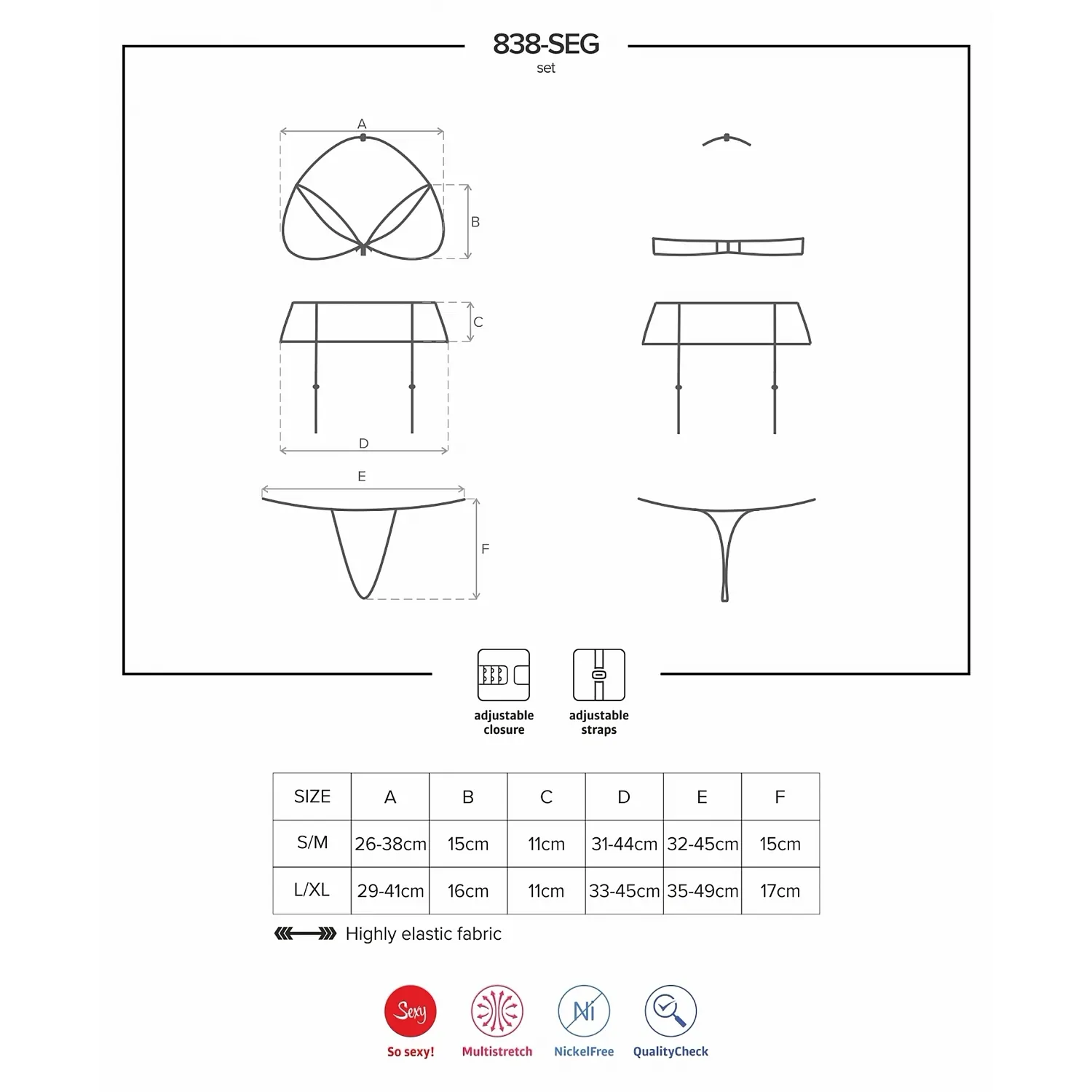 Set Obsessive 838-SEG Roșu este un produs de lenjerie nemaipomenită și fantastic de captivantă, concepută și fabricată de prestigiosul brand de lenjerie Obsessive din Polonia.