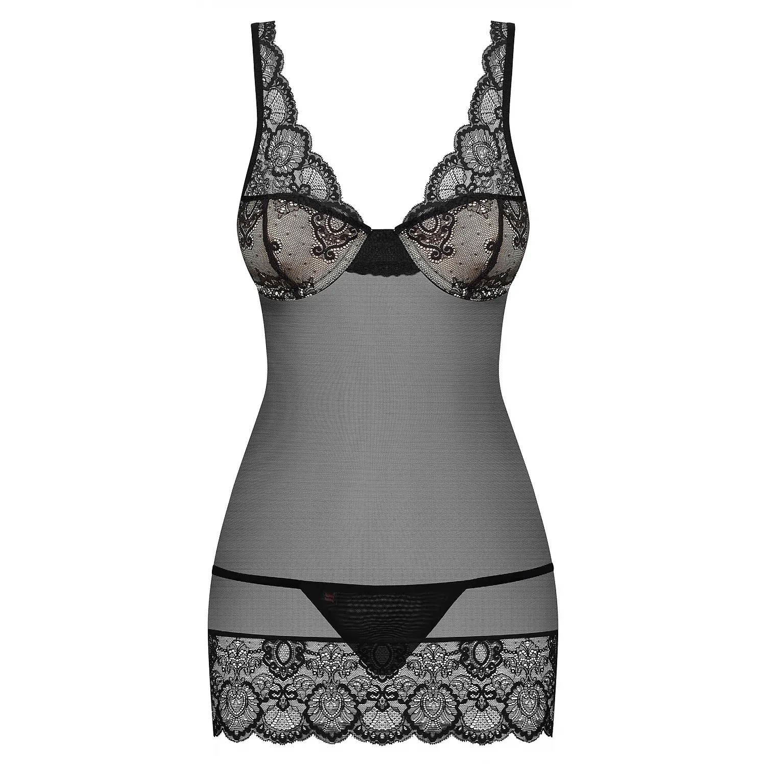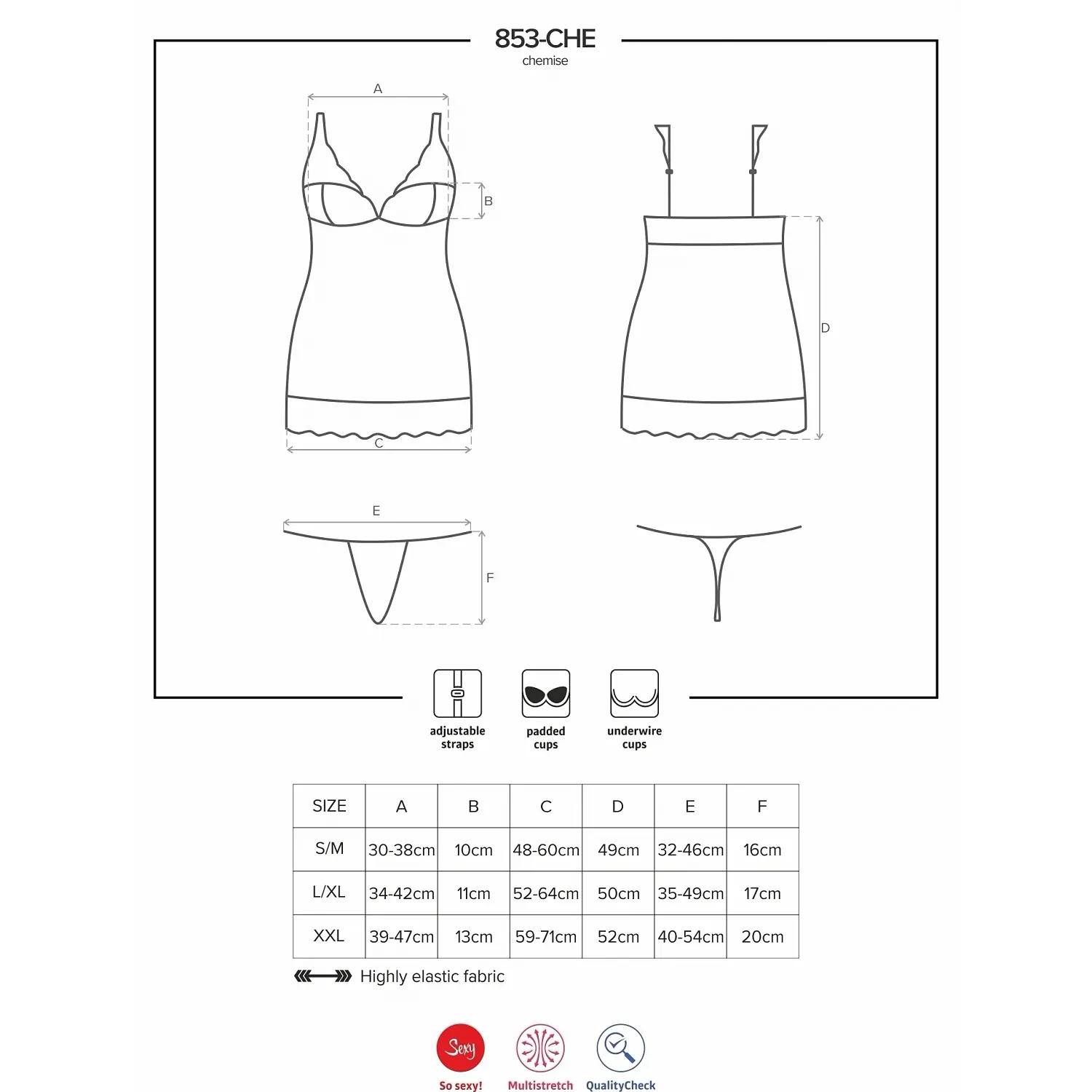 Chemise Obsessive 853-CHE închis la culoare este un obiect de lenjerie uimitoare și inimaginabil de răpitoare, gândită și realizată de prestigiosul brand de lenjerie Obsessive din Polonia.