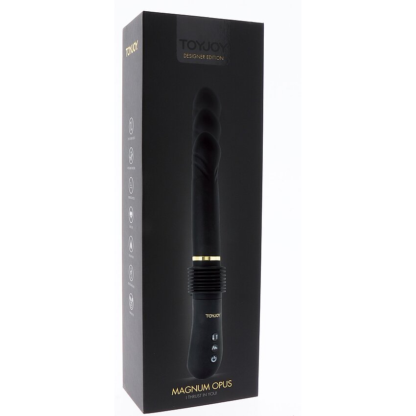 Vibratorul MAGNUM OPUS THRUSTER Designer Edition de la Toy Joy este un vibrator de silicon care nu numai că oferă vibrații, ci și o mișcare de împingere care se extinde cu 8 cm.