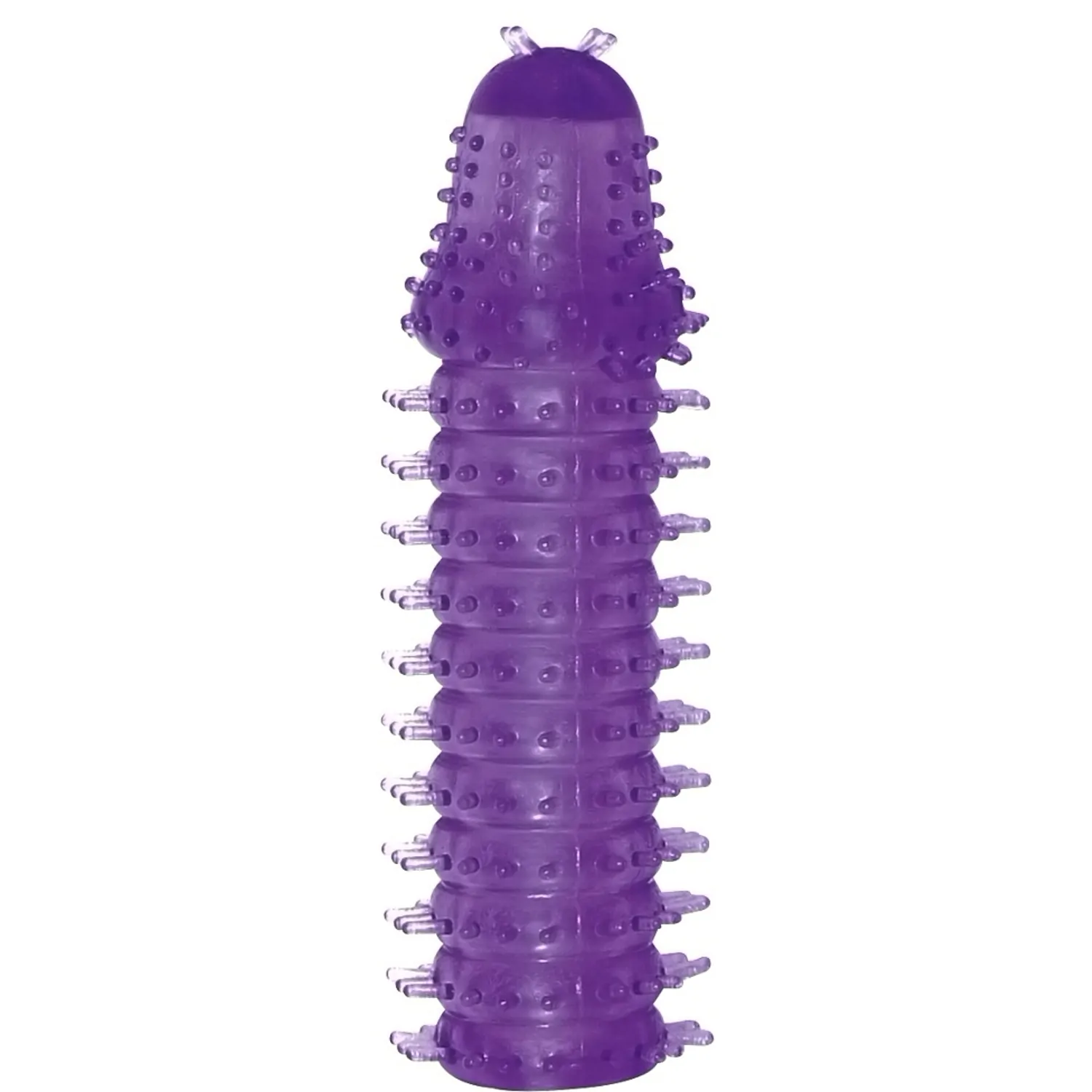 O unealtă orgiastică pentru penis și vibrator! Acest manșon neted din material gelatinos mov este foarte maleabil și se potrivește oricărui mădular sau vibrator. Capul zimțat și peri moi de la ax oferă o stârnire incredibilă.