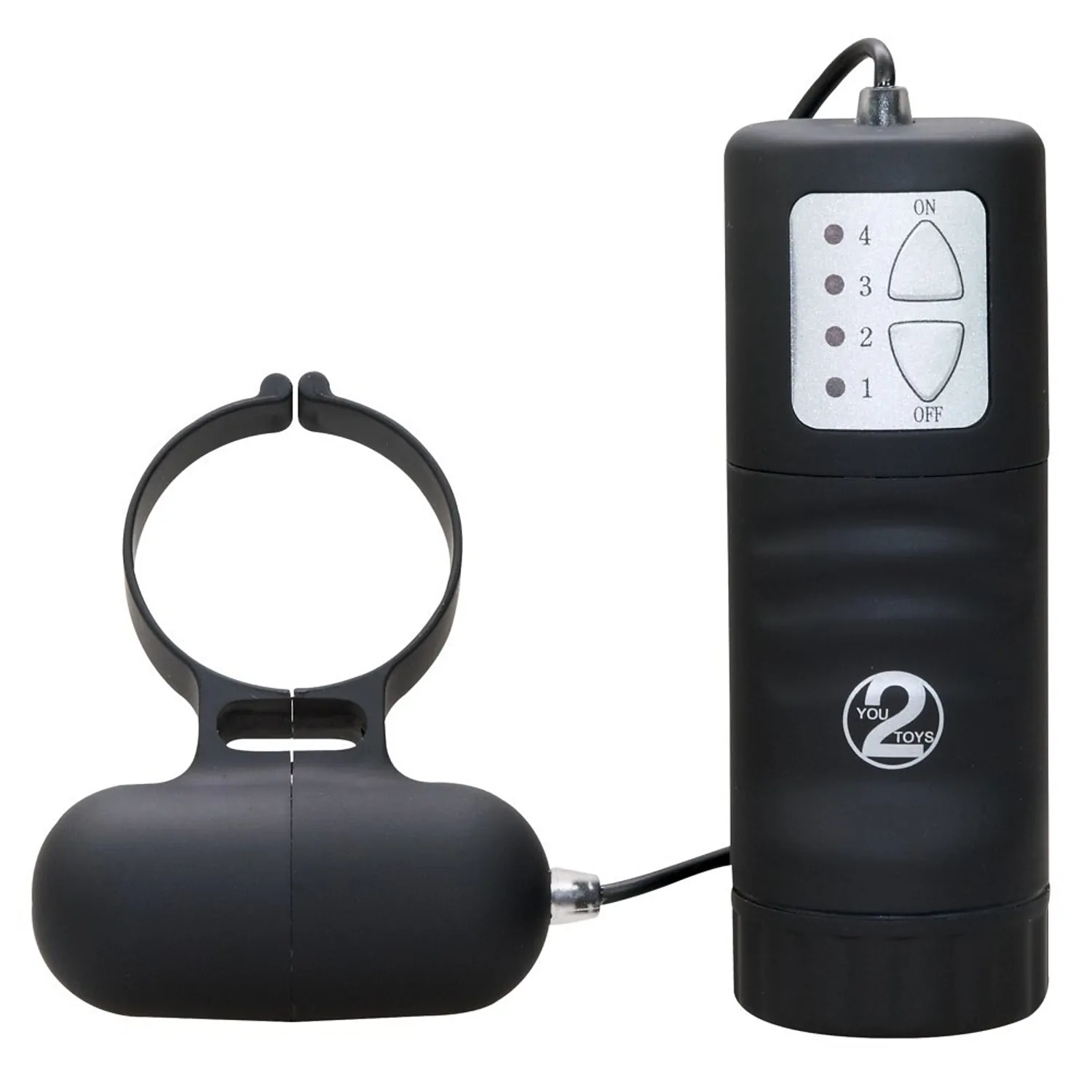 Inel pentru penis din material ferm cu suprafață jelly și catifelată, în înfățișare de cuier cu atașat de ou vibrat.