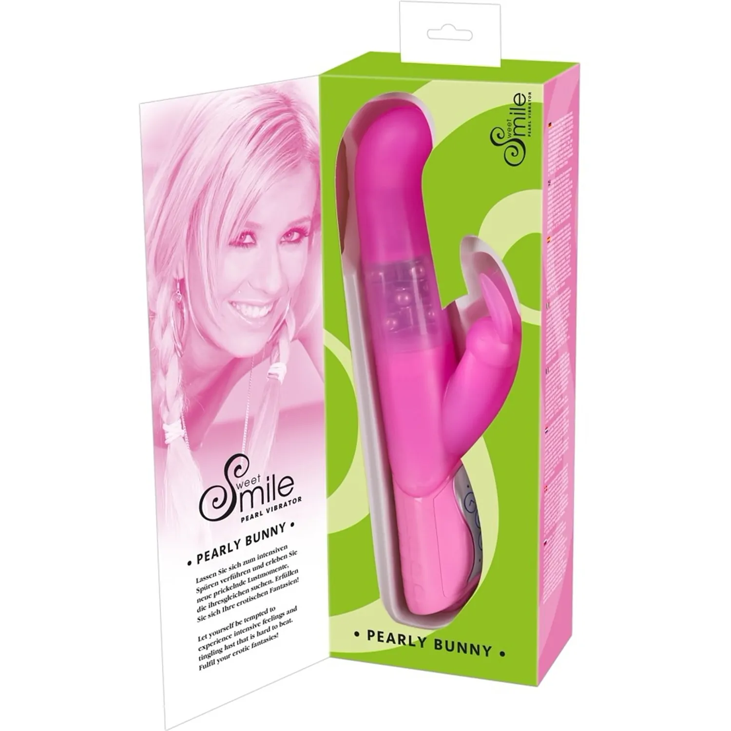 Vibratorul Smile Pearl, are un finisaj mătăsos Soft-Touch fiind foarte fin la atingere, are capul circular și stimulator clitoridian în formă de iepuraș, acesta fiind cireașă de pe tort. Are 3 nivele de rotații și 7 nivele de vibrații, controlabile printr-o simplă apăsare a unui buton. Vibratorul are capul făcut special pentru stimularea puternică a Punctului G, în partea interioară deținând inserat un ax cu mărgele rotative.