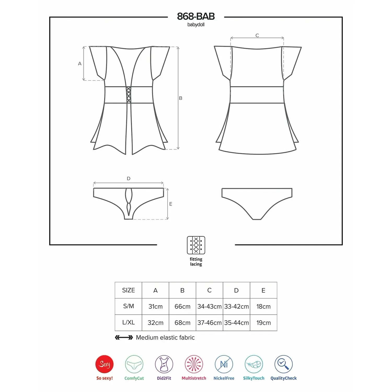 Babydoll Obsessive 868-BAB închis la culoare este o piesă de lenjerie uimitoare și grozav de plăcută, creată și realizată de prestigiosul brand de lenjerie Obsessive din Polonia.