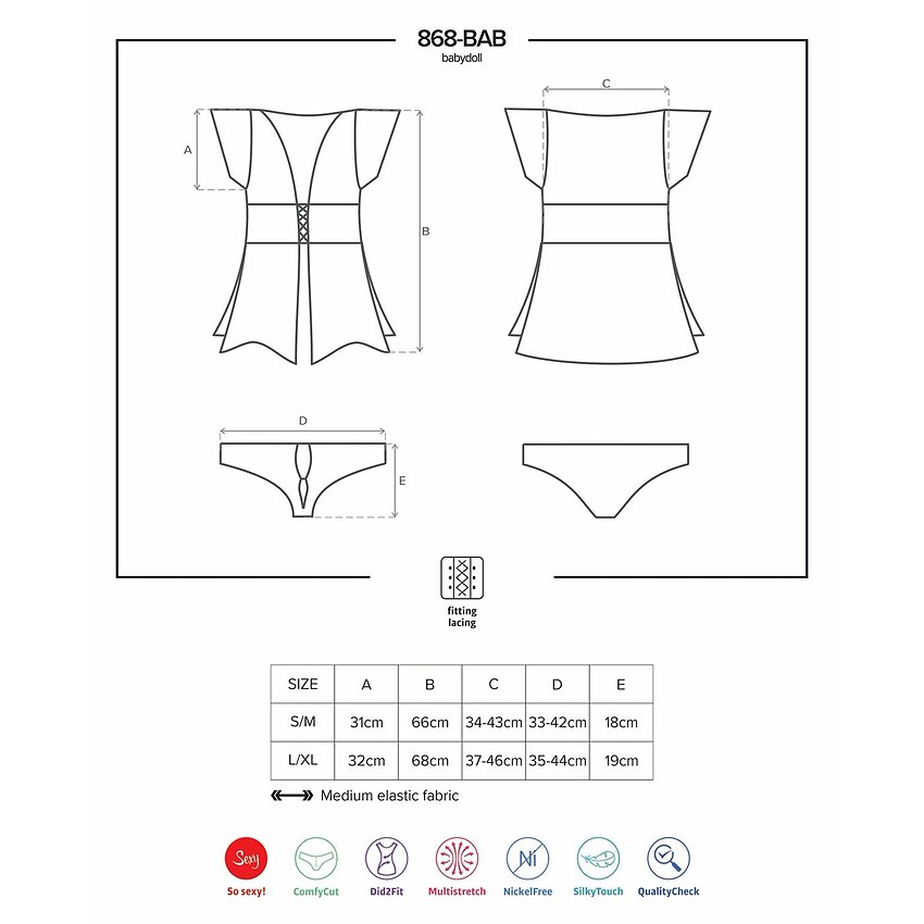 Babydoll Obsessive 868-BAB Negru este o piesă de lenjerie minunată și grozav de plăcută, concepută și realizată de remarcabilul brand de lenjerie Obsessive din Polonia.