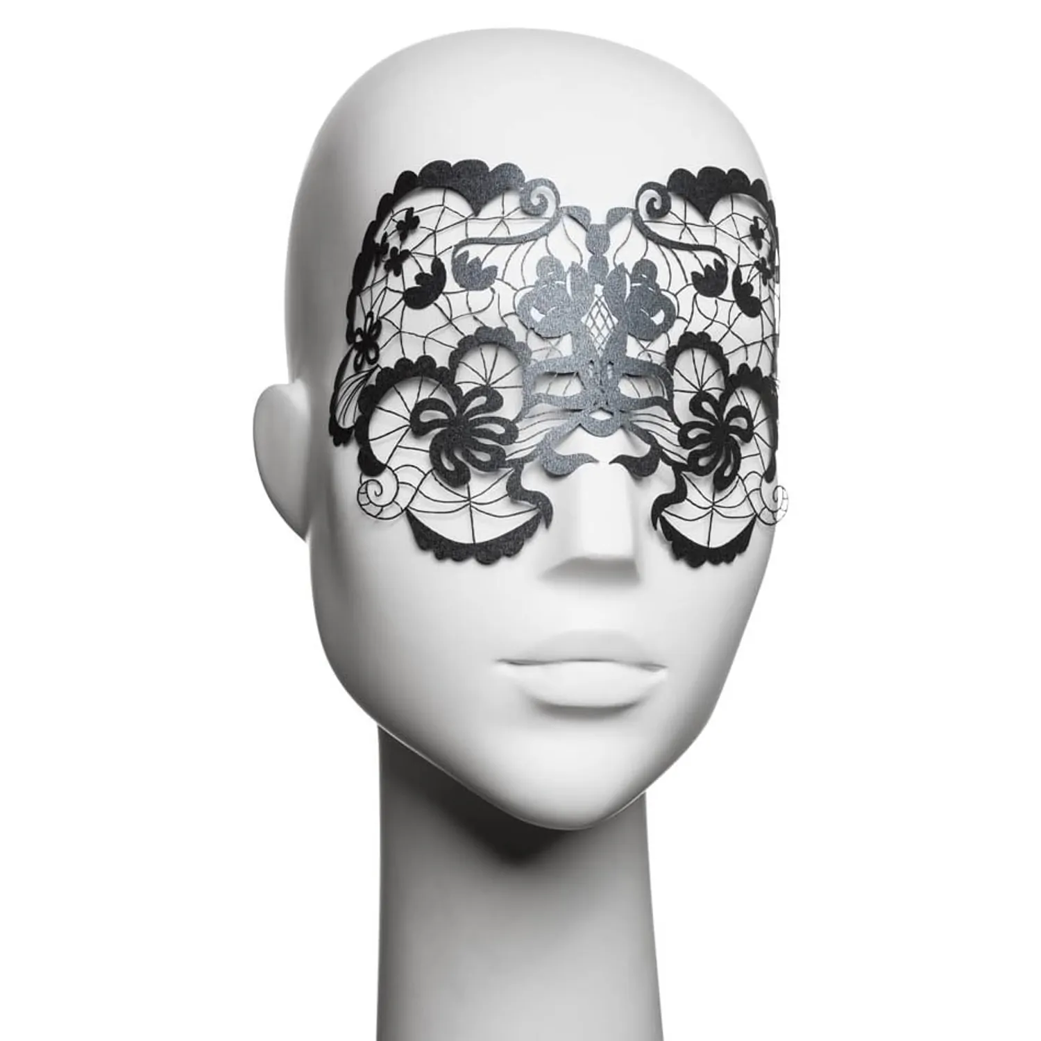 Mască fabricată din vinyl, de colorit neagră, particular concepută pentru o noapte de seducție completă. Aspectul ei elegant, te învăluie în mister și te face să te simți ca o adevărată divă. Este foarte ușor de purtat, lipindu-se cu micile autocolante direct pe față. Autocolantele sunt refolosibile, pachetul fiind dotat cu altele noi. Mască nu are niciun fel de șnururi pentru prindere, asta fiind un avantaj, ea atașându-se direct pe față excluzând să îți strice coafura. Este 100% flexibilă și foarte durabilă, de asemenea poate fi tăiată pentru a obține un formă excelentă pentru fizionomia dumneavoastră. Acest accesoriu este sublim și pentru petreceri, asortată cu o rochiță, ea îți va da o notă de mister, senzualitate, confort permițând o ușoară libertate de mișcare. Este indicată introducerea măștii pe pielea curată, lipsită de make-up.