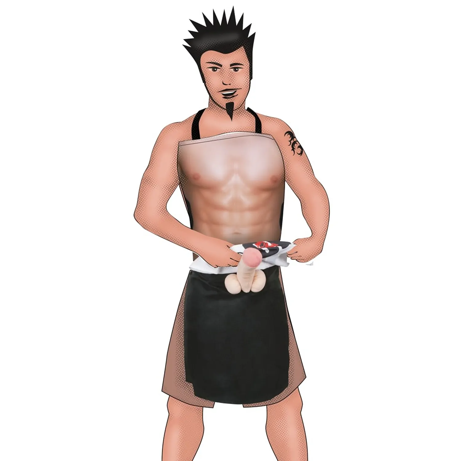 - Șortul se prinde de gât și vine cu un trup perfect, ca în poze, cu abdomen cu pătrățele și inscripția BIG BOSS jos, toate acoperite de urme de ruj roșu. - Partea de jos a șortului este dublă (negru jos, alb sus), iar când dai la o parte materialul alb de sus, apare un mare pliu de pluș, cu un vârf roz și bile rotunde. - Jucăria este cusută cu un șiret alb de componentă de sus a șortului.
