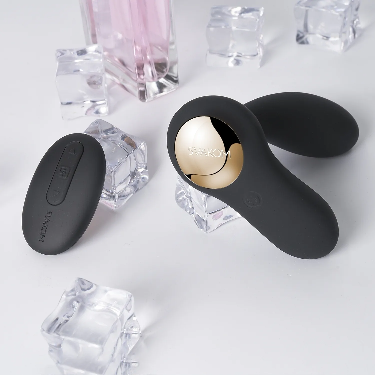 Vă prezentăm noul plug cu vibrații puternice, de la Svakom. Este viguros și luxos, special conceput pentru cupluri. Transmite 7 maniere de vibrare, fiecare cu 5 nivele de intensitate= 35 moduri diferite. Controlul se face cu ajutorul telecomenzii wireless. Este flexibil