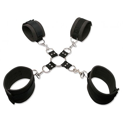 Setul, de culoare negru elegant, este compus dintr-o pereche de cătușe pentru mâini și una pentru glezne, fiind astfel conceput pentru a lega mâinile și picioarele împreună. Cătușele sunt confecționate din epidermă de înaltă calitate, sunt confortabile, se pot regla și sunt foarte rezistente, fiind astfel ideale pentru o practică interesantă.