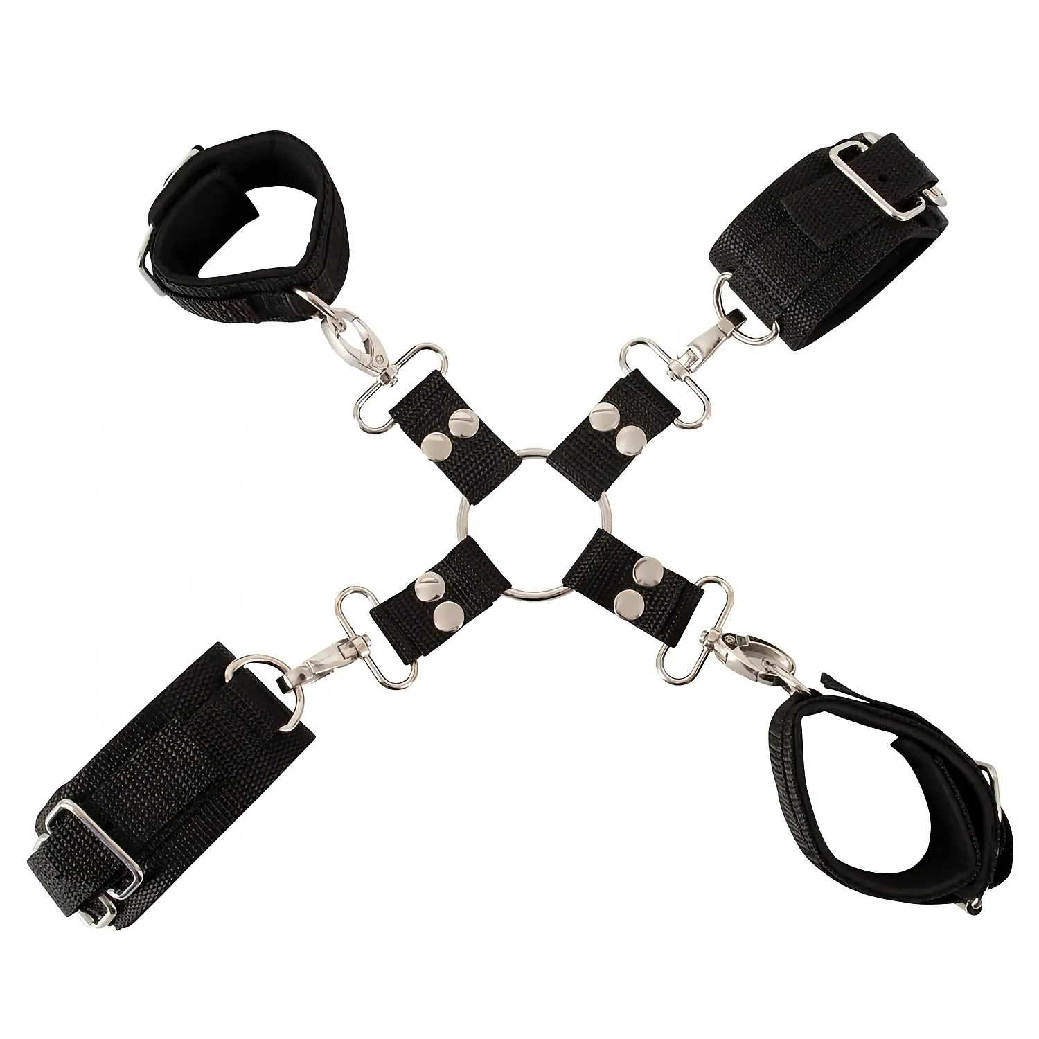 Set bondage format din 4 cătușe ajustabile pentru mâini și picioare. Preia controlul complet asupra partenerului tău cu Heavy-Duty Kit. Acest kit ușor de utilizat include manșete reglabile din neopren, pentru încheietura mâinii și manșete glezna. Centuri de nailon groase, un inel metal O-ring și catarame din metal de lux și clipsuri. Manșetele confortabile neopren se simt excepțional pe piele, iar benzile de nailon și cataramele din metal garantează că soțului tău nu va scăpa în curând. Mască mătase bonus. Bucurați-vă de fiorul de a fi hogtied, excluzând a fi trebuință să vă îndepliniți griji cu privire la tehnici complicate și care leagă noduri elaborate.