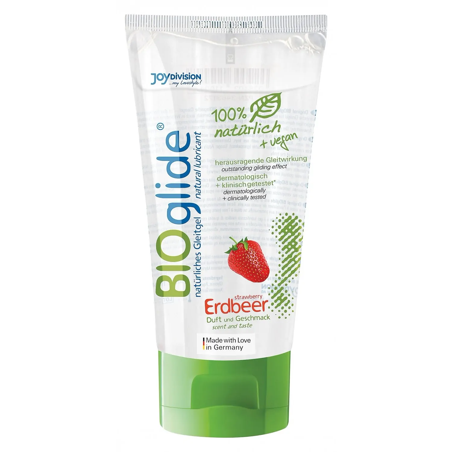 Lubrifiantul Bioglide Căpșuni 80ml este un lubrifiant 100% natural. Toate părțile componente folosite sunt pe bază de plante și astfel BioGlide Căpșuni este foarte bine tolerat de către piele. Este foarte solubil în apă și nu conține grăsimi și ulei. Oferă o vâscozitate optimă putând fi întrebuințat pe o perioadă destul de întinsă de timp excluzând orice fel de probleme. Este recomandat atât pentru obiecte de uz sexual cât și pentru aparate de frecție sau electrostimulare.