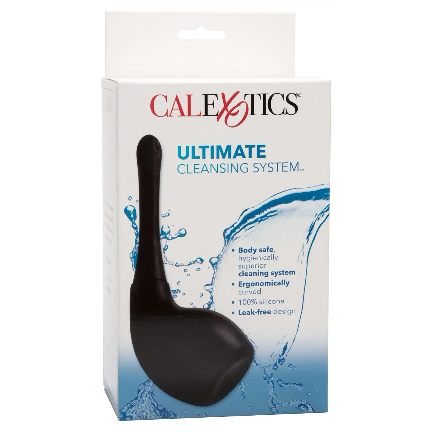 Irigator anal de la CalExotics 100% din silicon, cu vârf înclinat pentru prevenirea vărsării lichidului din interior.