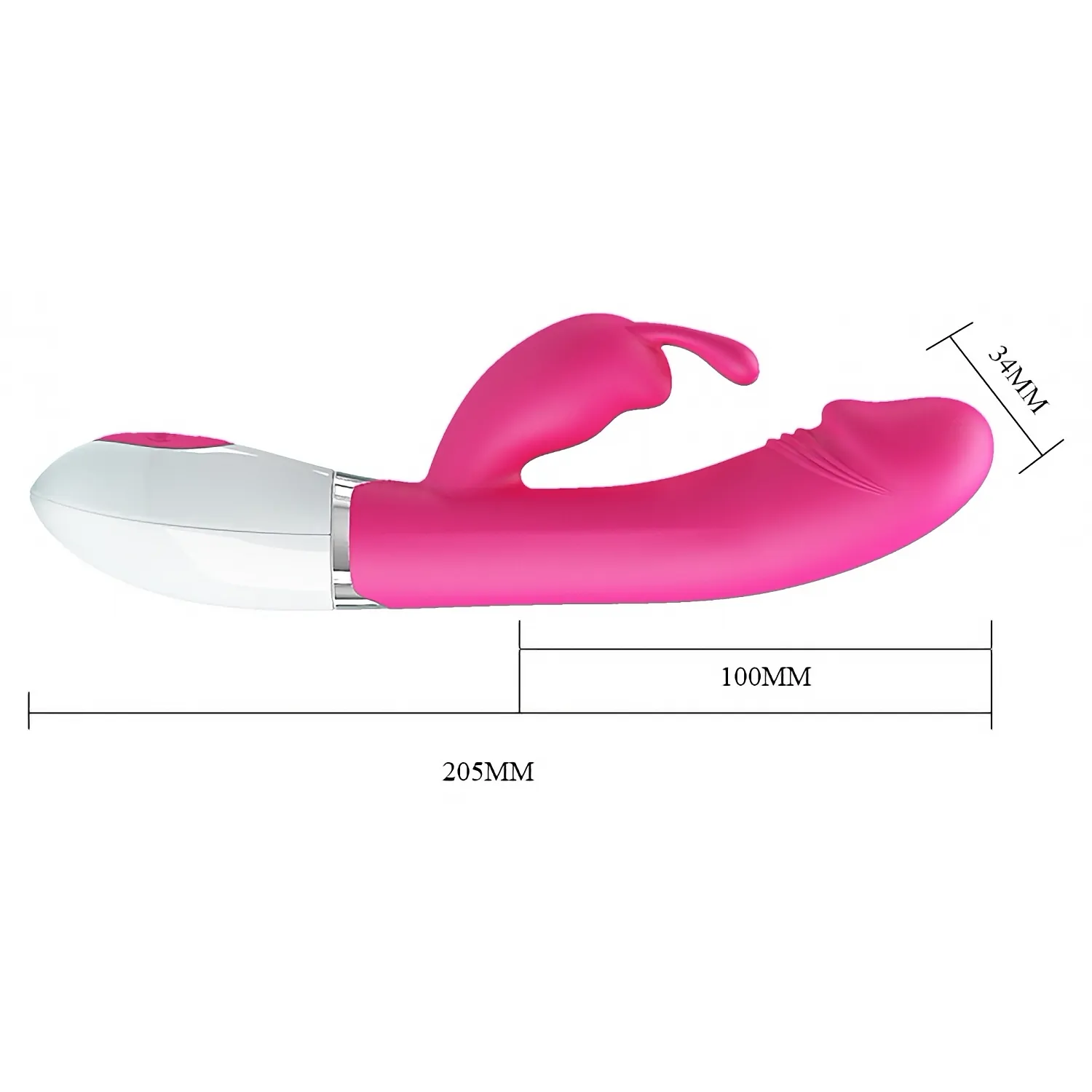 Creat din silicon medical, vibratorul se încălzește fără întârziere la temperatura corpului uman, iar suprafața sa este catifelată și simpatică la atingere. Are designul idilic pentru a stimula concomitent punctul G și clitorisul, capul puțin curbat vizează cu exactitate punctul G.