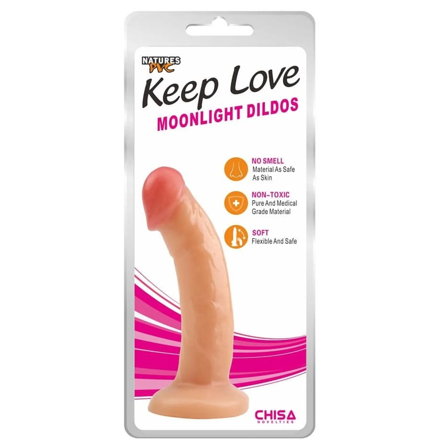 Dildo realist cu ventuză Moonlight este confecționat din PVC și are culoare naturală. Ventuză se poate atașa pe orice regiune plană pentru experiențe hands-free.