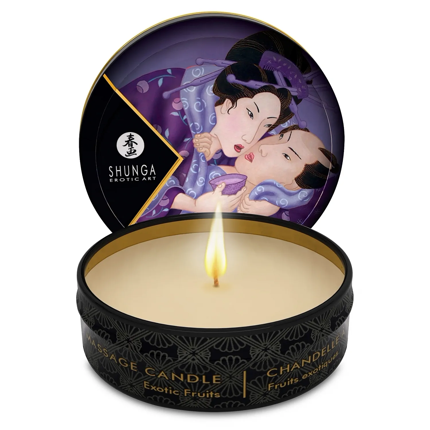 Lumânările de masaj pe bază de soia pot fi utilizate atât ca o lumânare în ambianță, cât și ca un ulei de masaj. Aprindeți lumânarea și lăsați-o să ardă timp de circa 20 de minute. Stingeți flacăra și turnați o cantitate mică în palma mâinii. Administrați lăsat peste tot corpul pentru un frecție senzual. Misiunea artei senzuale SHUNGA este de a dărui articole de calitate pentru a dezvoltă intimitatea pentru cuplurile care doresc să adauge varietatea și senzualitatea în relația lor.