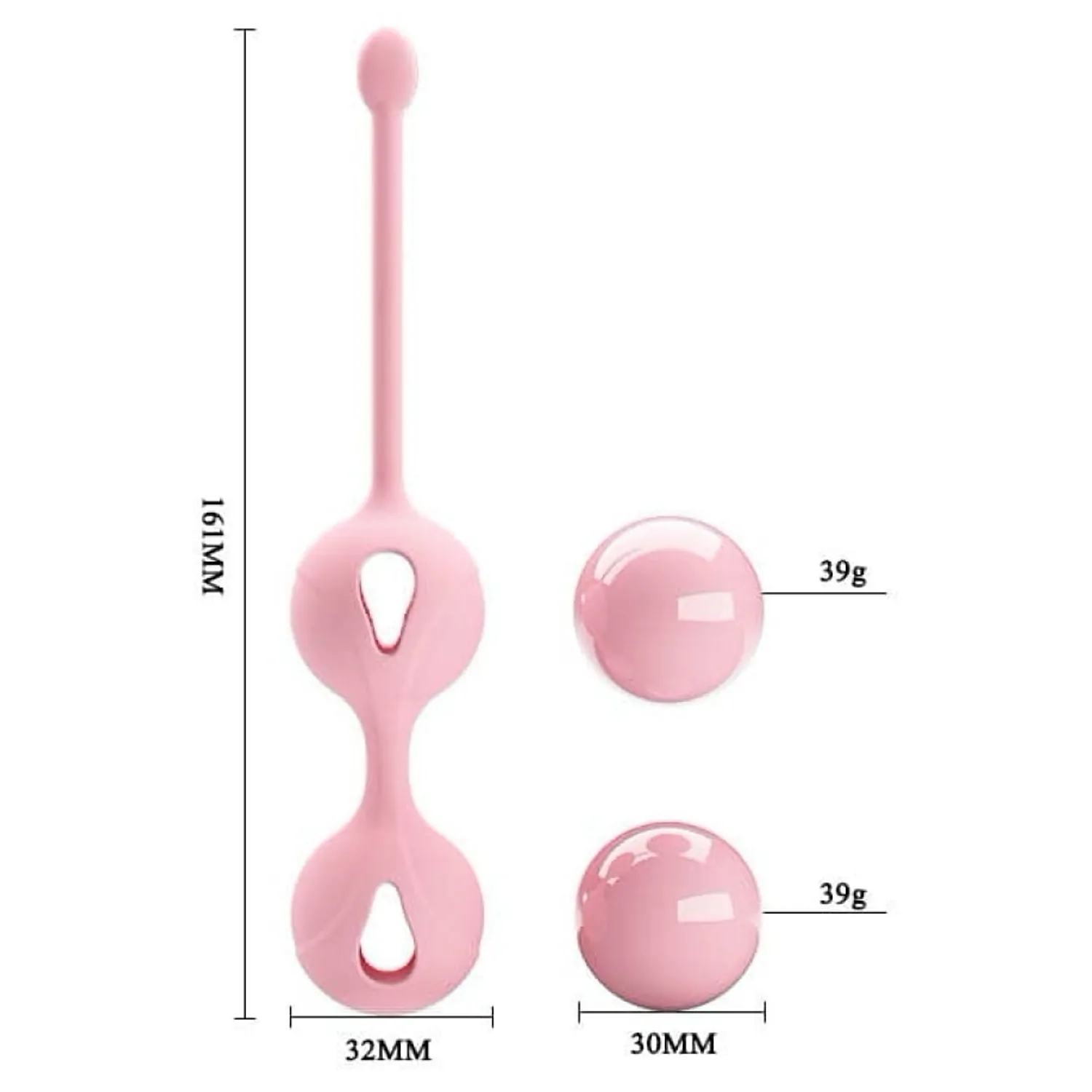 Bile Genitale Pretty Love Kegel Tighten Up I din silicon. În interiorul bilelor se află câte o bilă metalică, care la cea mai mică deplasare oferă o vibrare naturală.
