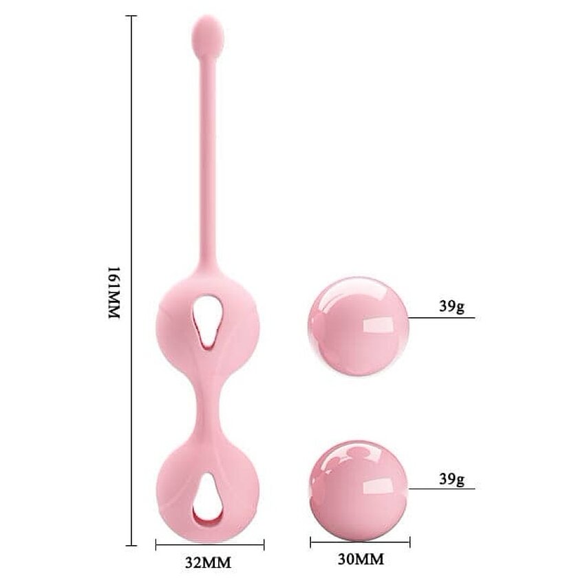 Bile Genitale Pretty Love Kegel Tighten Up I din silicon. În interiorul bilelor se află câte o bilă metalică, care la cea mai mică mișcare oferă o vibrare naturală. Finisaj fin, senzație de mătase. Stimulează și întărește mușchii pelvieni. Lungime inserabilă: 8.4 cm.