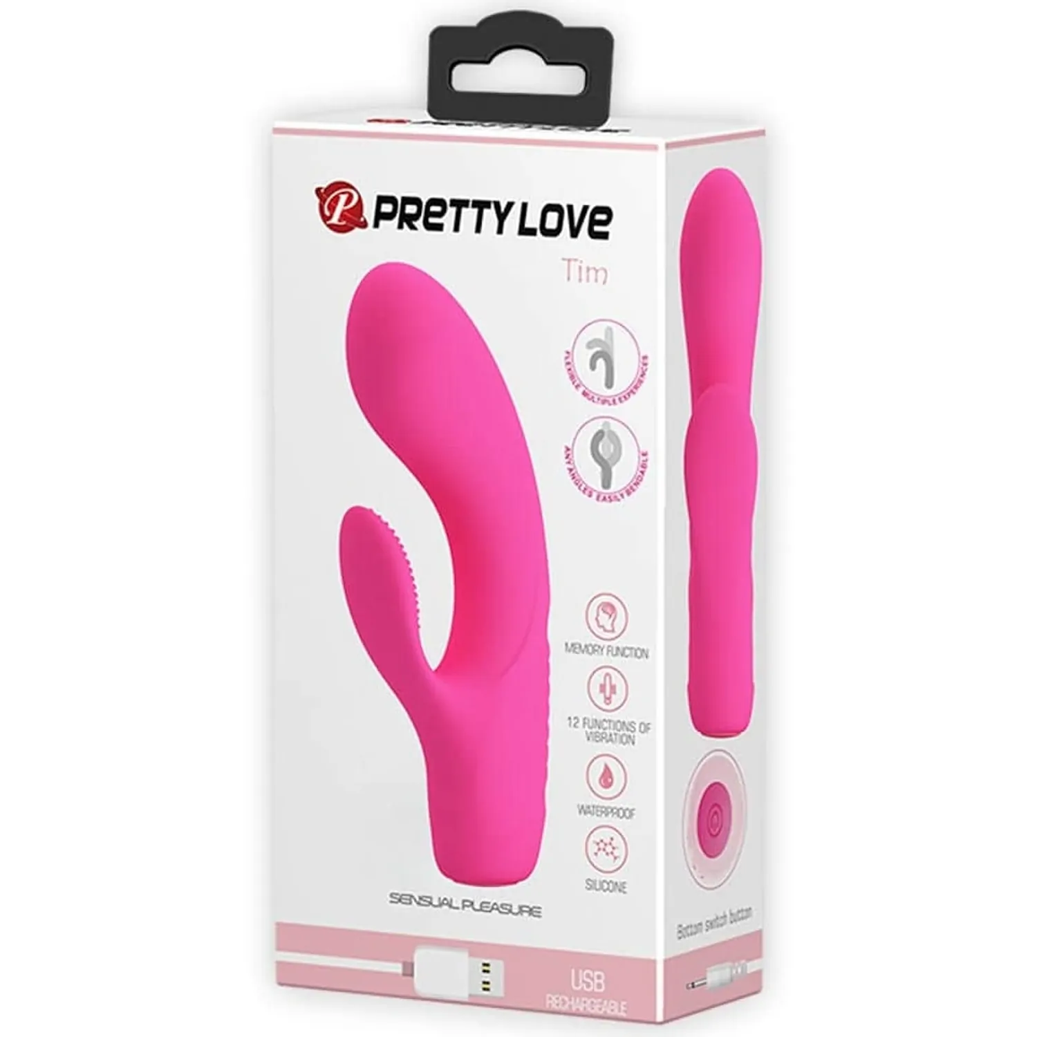 Pretty Love Tim Pink este un vibrator rabbit făcut din silicon, are o lungime de 15.5 cm (10.5 cm inserabili) și un diametru de 3.5 cm. Are un design performant, fiind ușor curbat, aparte realizat pentru stârnirea puternică a punctului G. Stimulatorul pentru clitoris este neted și destul de catifelat, fiind foarte grijuliu cu clitorisul tău atunci când îl stimulează.