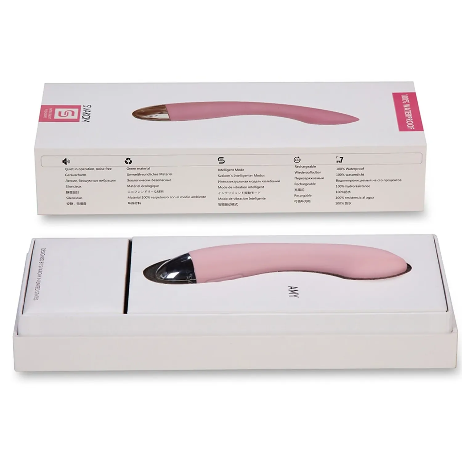 Dimensiunile și forma sa elegantă vor face din vibratorul AMY masatorul tău favorit. Designul inteligent nu este nici prea mare dar nici prea mic, curba sa delicată și corpul din silicon robust la apă fac ca vibratorul AMY să alunece și să stimuleze perfect Punctul G cu ușurință.