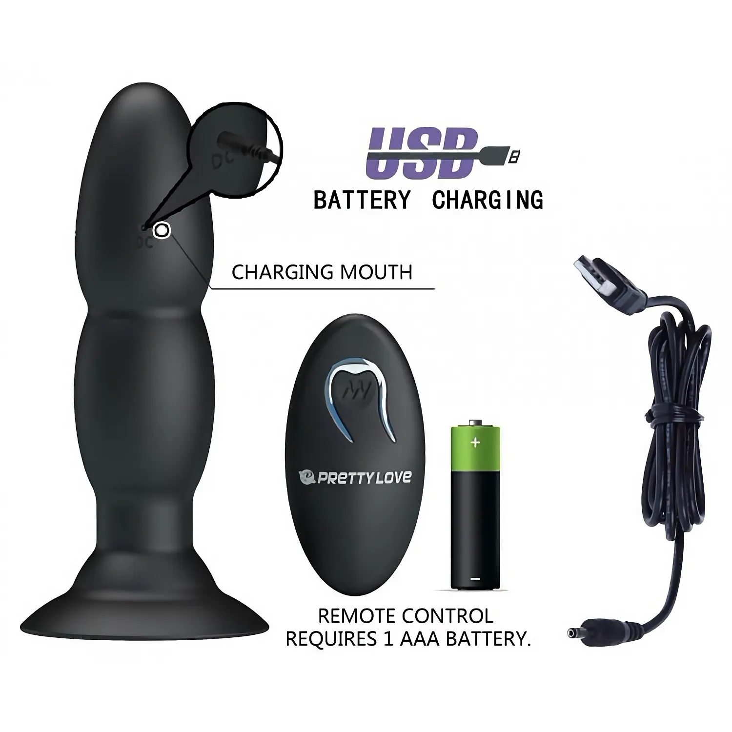 Anal Plug-ul cu Vibrații Pretty Love Beaded cu un stil ingenios incită cele mai intime zone cu vibrații intense, laolaltă cu setul de bile rotative la baza jucăriei pentru senzații incredibile în zona sfincterului. Surescitarea unică și intensă, o puteți adapta pentru a vă satisface capriciile cu 4 maniere de vibrații și rotații diferite, ce pot fi comandate manual utilizând un buton de pe telecomanda wireless sau de pe plug. Baza jucăriei are o aspirație puternică, pentru mai numeroase posibilități. Anal Plug-ul este perfect rezistent la apă și este ușor de purificat cu puțină apă caldă și săpun antibacterian.