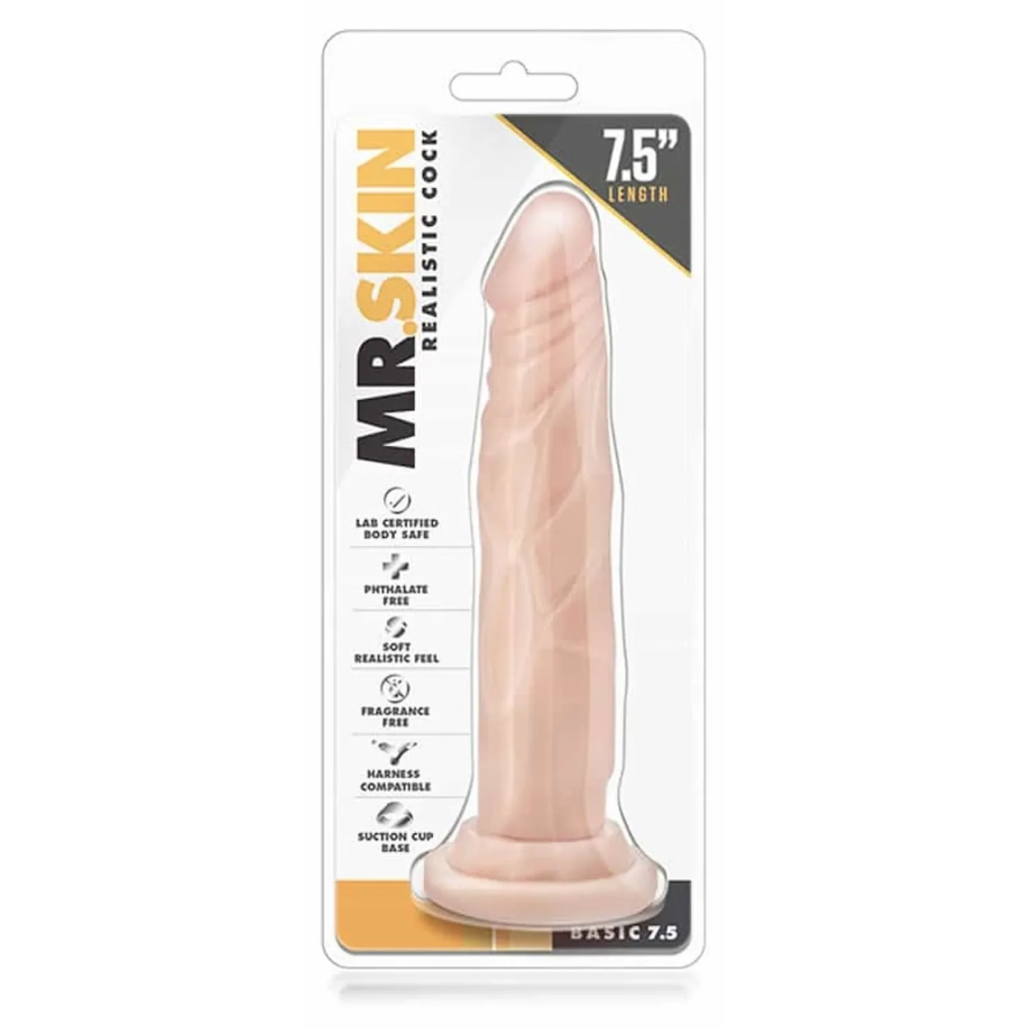 MR. SKIN REALISTIC Penis BASIC 7.5 este un dildo super realist fin și cu ventuză pentru consolidarea pe deosebite suprafețe plane sau pentru a se putea folosi ca strap-on. Este atent lucrat deține vene pe toată suprafața este din material moale și flexibil.