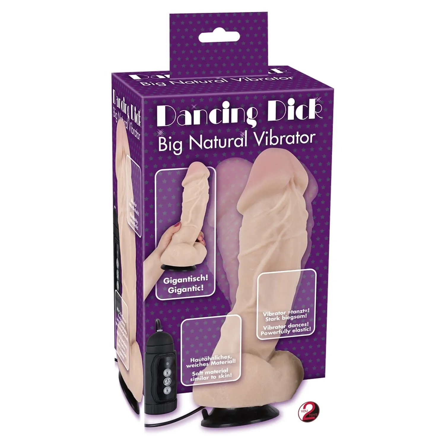 Vibrator natural mare. Extrem de flexibil, cu vene în relief, cap de penis impresionant și testicule mari. Are 5 ritmuri de vibrații și 3 viteze de întoarcere controlabile separat prin apăsarea unui buton.