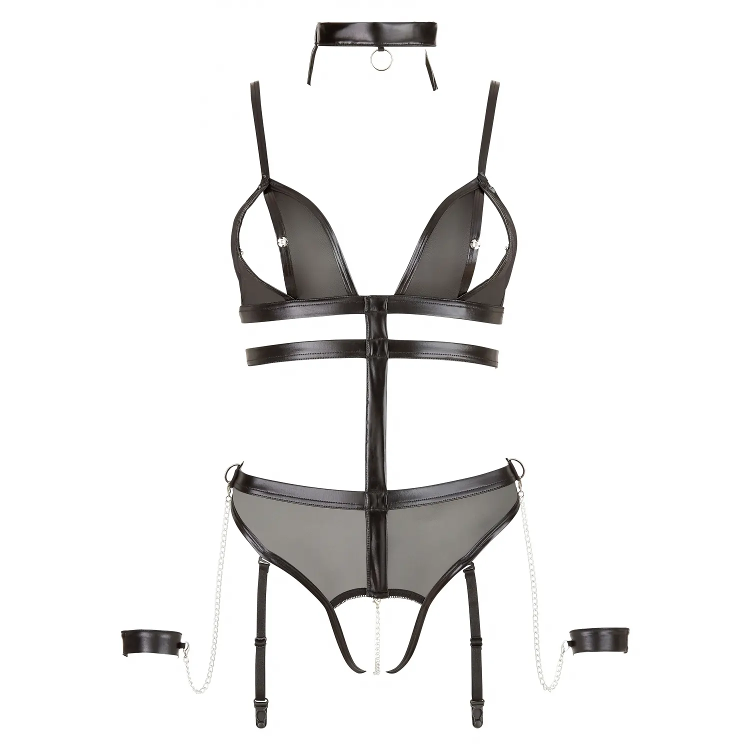 - Cupele cu fante pot fi deschise deoarece există un buton pe fiecare ceașcă. - Body-ul are detalii incitante de aspect umed. - Include un guler cu înfățișare umed, cu un inel în față.