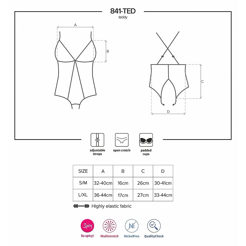 - Body-ul 841-TED-1 teddy de la Obsessive este alegerea perfectă pentru femeile ce doresc să-și scoată din minți partenerul, să petreacă împreună cele mai intense partide de sex.