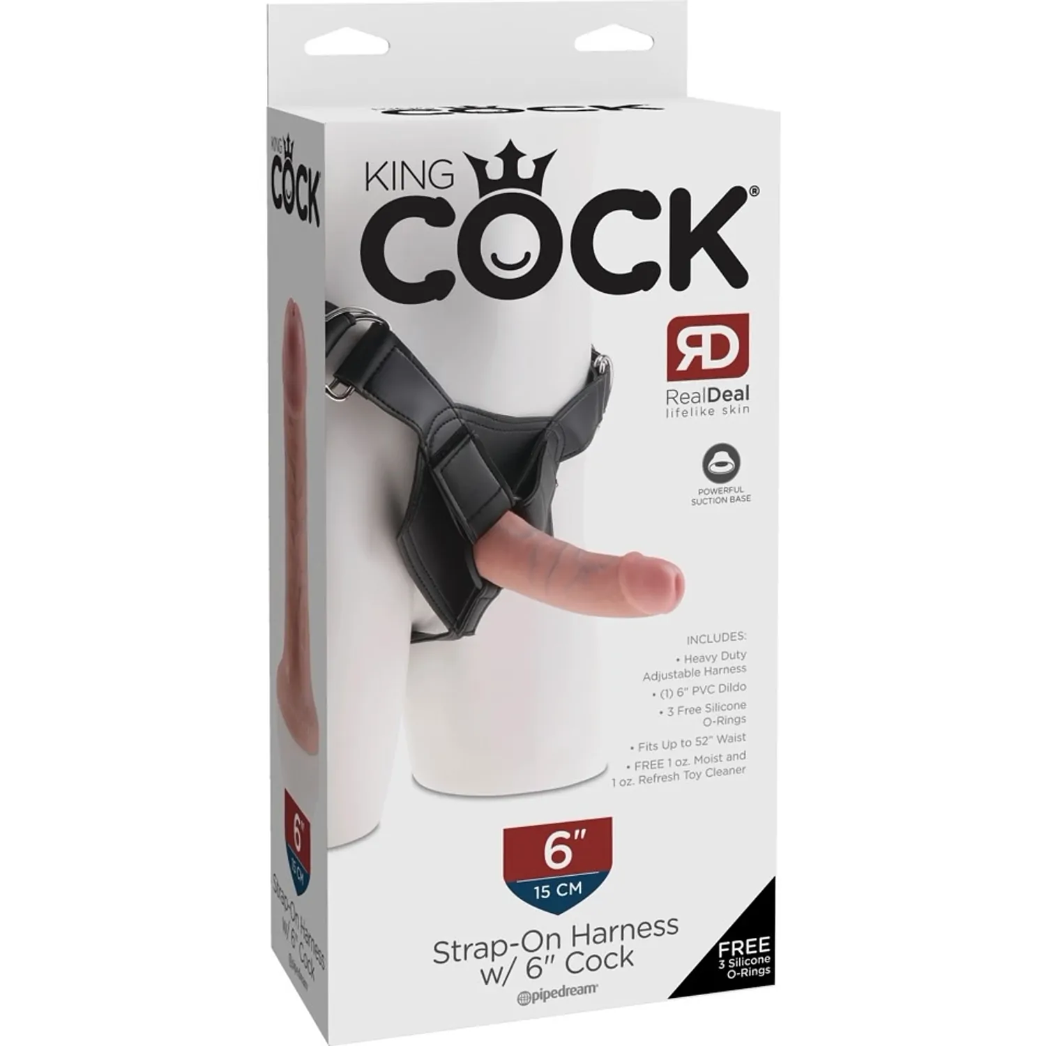 Acest strap on este ajustabil și este extrem de realist. Arată și se simte ca un penis adevărat! Fiecare venă, fiecare trăsătură de pe dong arată ca cea a unui mădular real. Dildo-ul are la bază o ventuză cu putere mare de aspirație cu ajutorul căruia se lipește de ham, formând un strap on de calitate. De asemenea, dildo-ul poate fi întrebuințat și ca atare sau poate fi lipit de alte suprafețe pentru a fi folosit fără mâini.