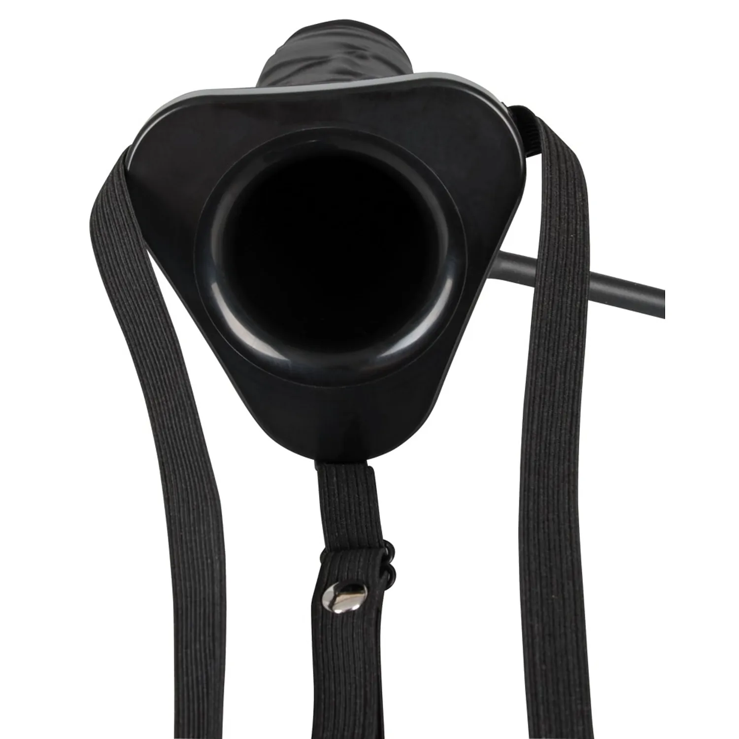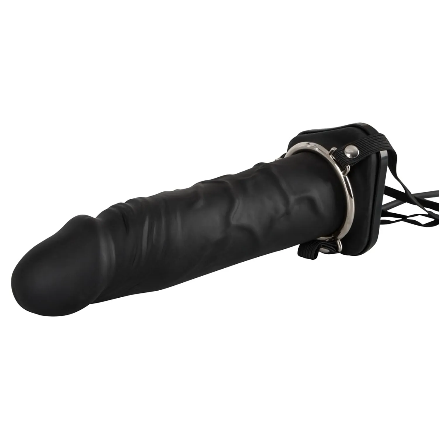 Strap-on cu dildo robust, gonflabil, care este gol în interior. Cu curele reglabile.