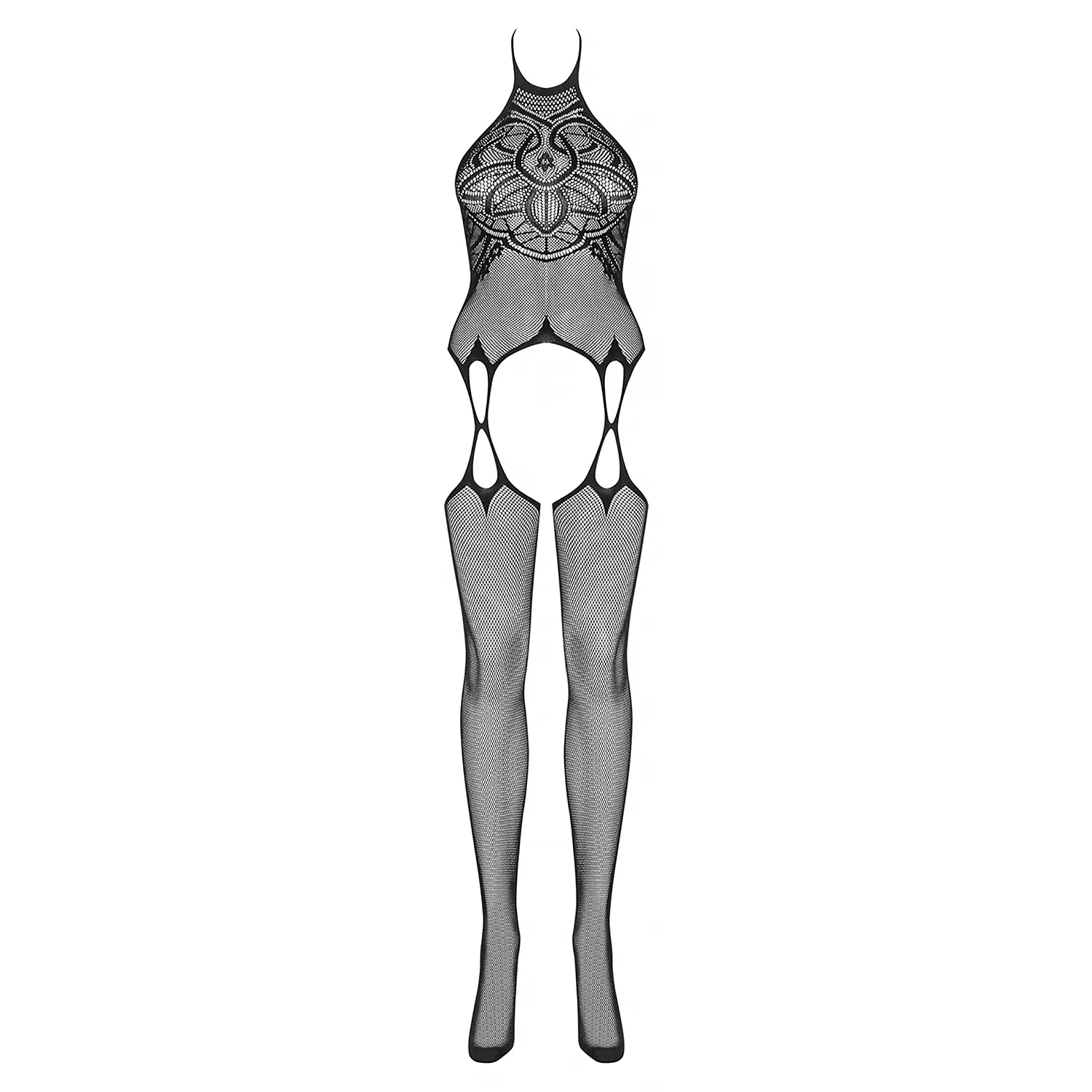 Bodystocking cu alură de top cu portjartier și dresuri, ce lasă descoperită zona inghinală.