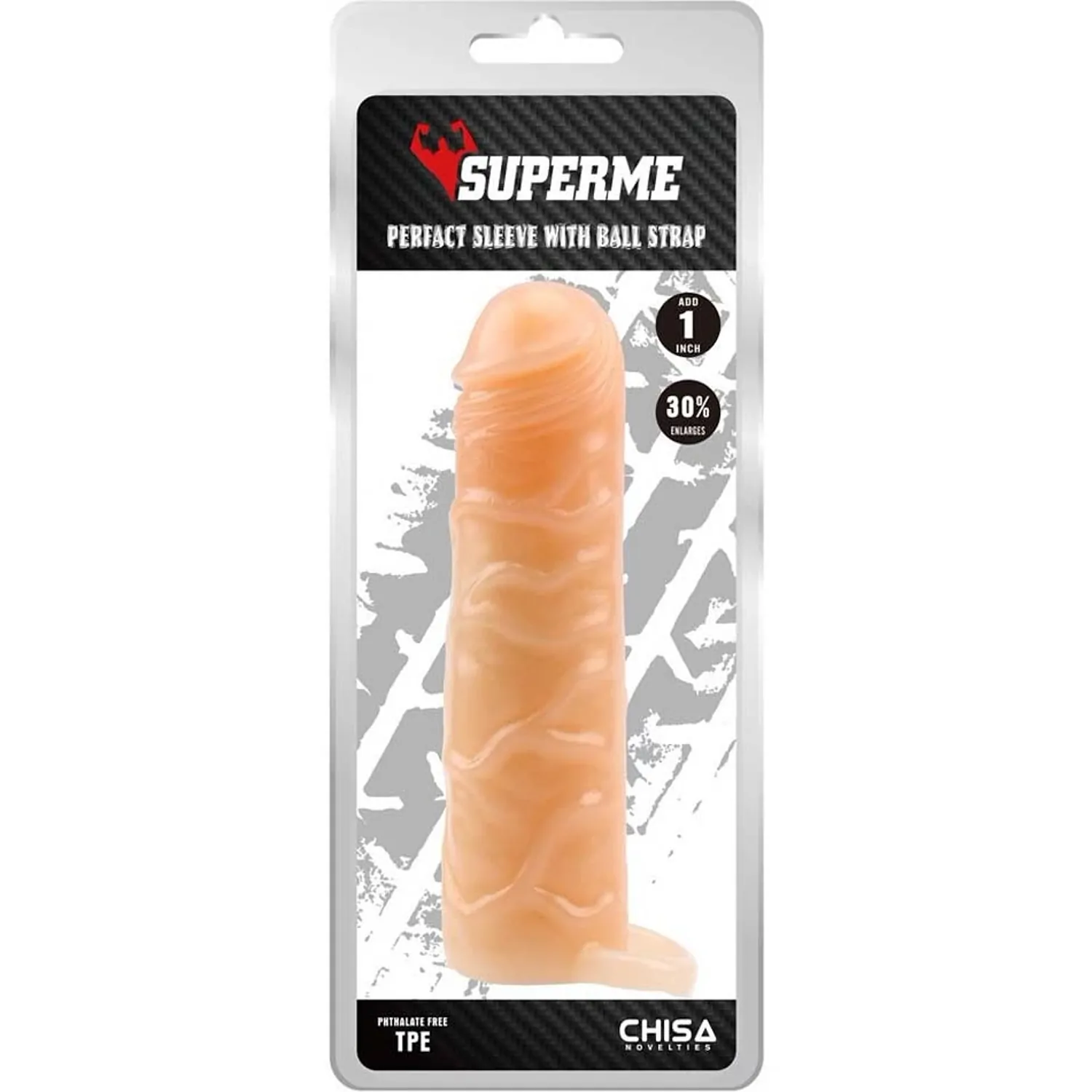 Supreme Perfect Manșon este un prelungitor pentru mădular confecționat din TPE și are un design realistic. Acesta are 18 cm lungime, completează penisului 2.5 cm în lungime și îl îngroașă cu 30%. Este desăvârșit pentru masculii care au membrul mic sau care pur și simplu vor să aducă ceva nou în dormitor pentru a-și surprinde iubită.