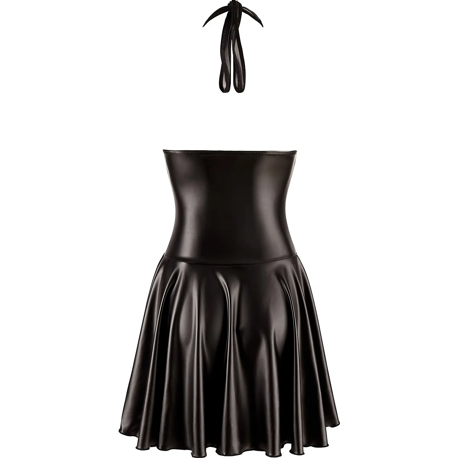 O rochie fierbinte pentru nopți fierbinți! Rochia scurtă de la NOIR este strânsă și conică, cu o jupă evazată. Este concepută din powernet fin cu detalii de vinil (partea superioară) și aspect umed (partea fustei).