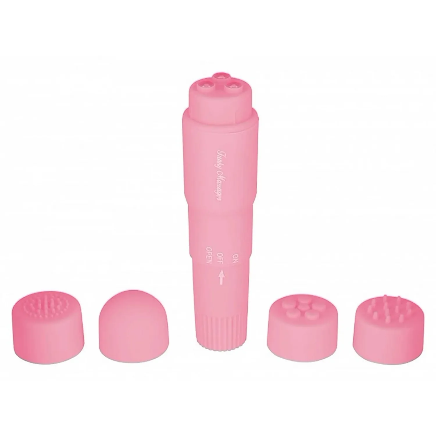 Funky Massager Roz este un stimulator distractiv, compact, intr-o alură vie. Design-ul este discret, viguros si face concubinul sublim pentru calatorii. Pentru frecție versatil vine cu 4 capace interschimbabile cu textura diferita si este conceput de o excepție ABS. Rezistent la apa.