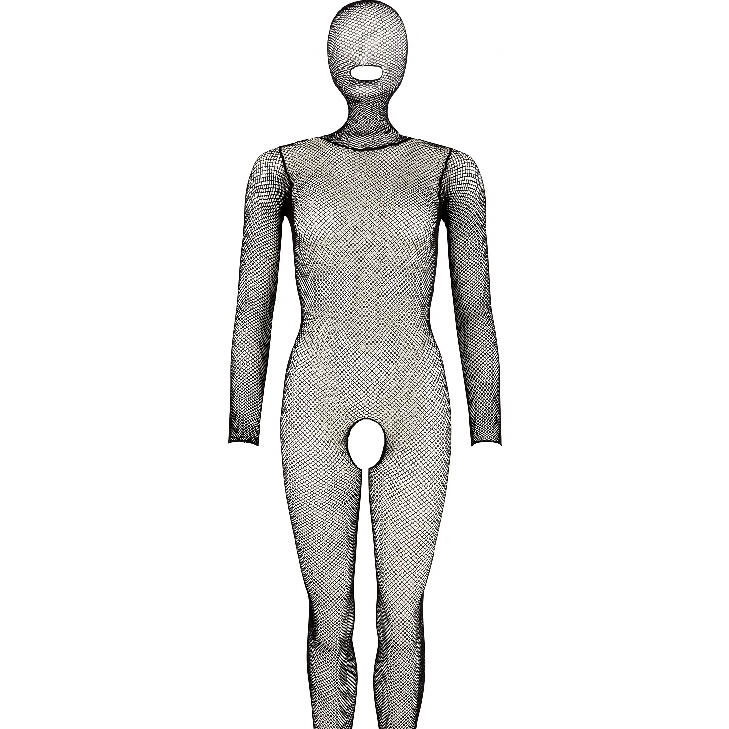 Catsuit Body stocking rețea cu mâneci 3/4 și mască pe cap. Transparentă provocatoare îngăduie partenerului dvs. să aibă o privire clară asupra a ceea ce se află dedesubt.