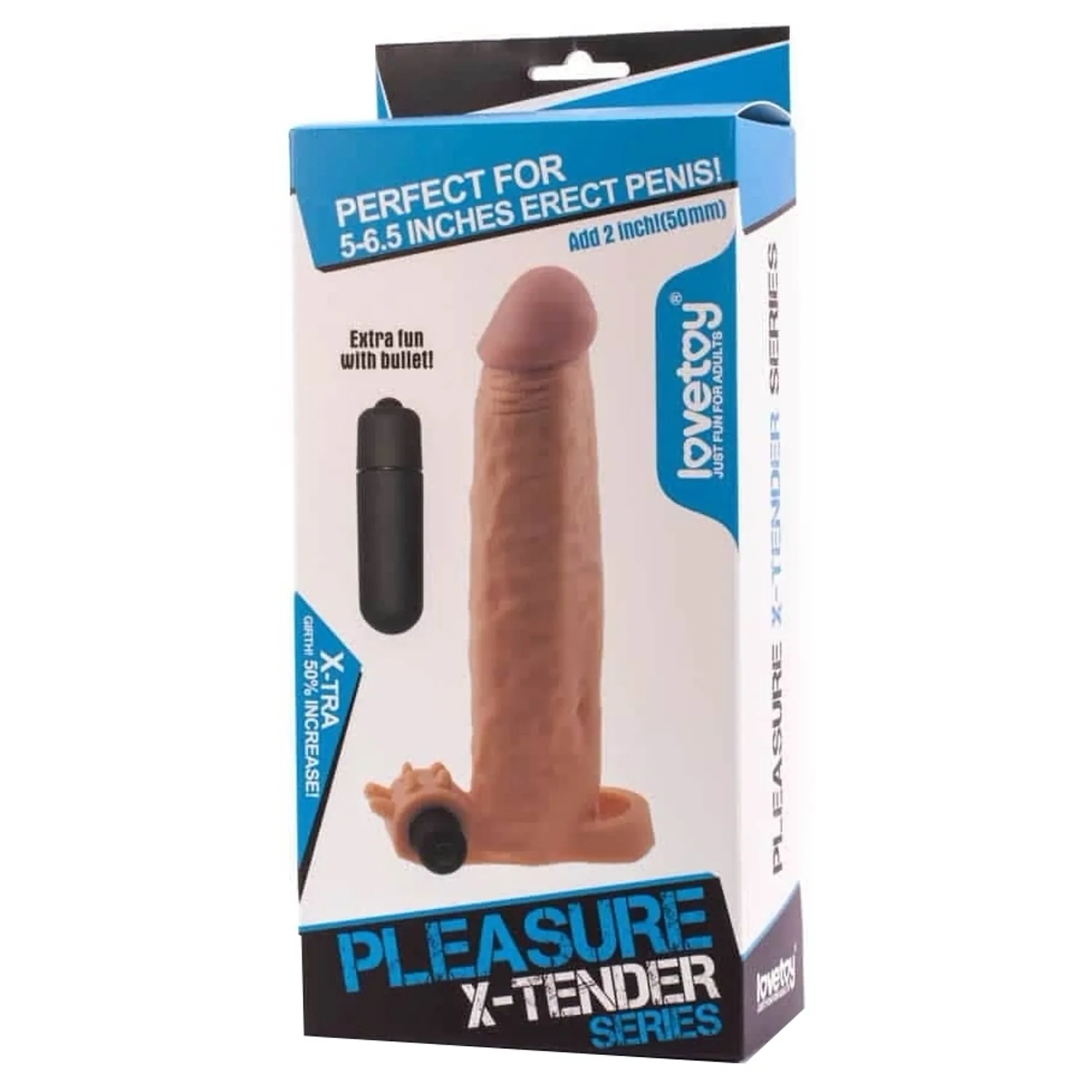 Prelungitor sex Pleasure X-Tender cu vibrații este un prelungitor realistic, care este lucrat din TPE. Acest prelungitor falus Pleasure X-Tender cu vibrații are o lungime de 19 cm și un diametru de până la 7 cm. La bază are un stimulator pentru clitoris în care poate fi introdus un mini vibrator.