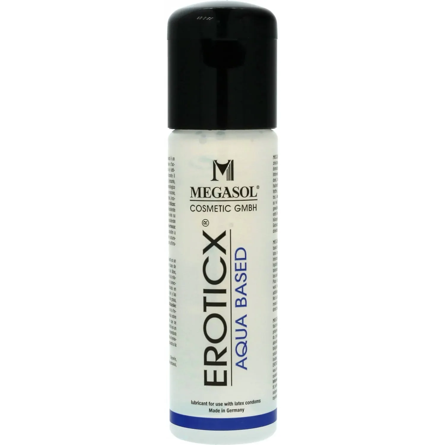 EroticX Aqua Based este un lubrifiant pe baza de apa ce contine o formula unica, de excepție superioara. Asigura o lubrifiere de calitate, de lunga durata. Datorita proprietatilor sale, tine destul de mult fara sa se usuce. Este corespunzător cu prezervativele din latex. In urma utilizarii lubrifiantului EroticX Aqua Based, pielea ramane mătăsos si catifelata. Este ideal pentru cuplurile care au probleme cu ungerea naturala. Are aroma naturala, nu pateaza si se clateste foarte usor. De asemenea, a fost verificat dermatologic si s-a dovedit a fi adecvat pentru persoanele cu pielea sensibila. Calitate germana.