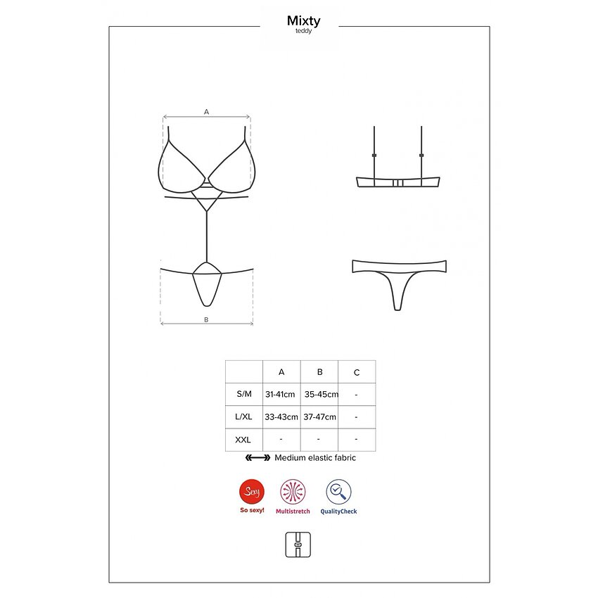 Body Obsessive Mixty Negru este o piesă de lenjerie tulburătoare și extraordinar de plăcută, gândită și produsă de prestigiosul brand de lenjerie Obsessive din Polonia.