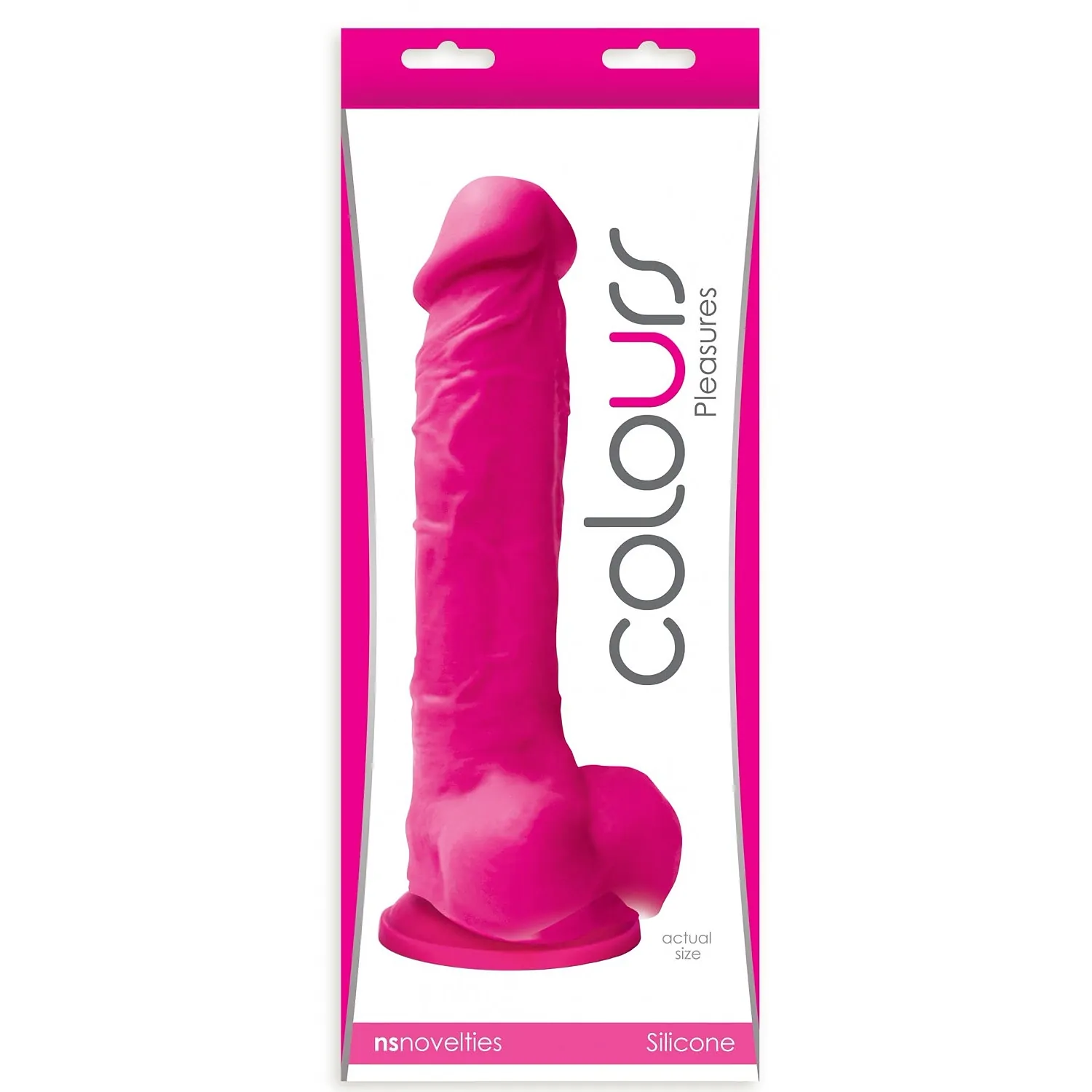 Dildo-ul Colours NS Novelties este roz, și are mărimi impresionante, având o mărime de 25 cm și un diametru de 5 cm. Datorită dimensiunilor sale, este mai mult decât suficient de mare pentru a satisface orice femeie. Se simte ca un penis adevărat, și arată ca unul, însă nuanță roz îi dă un aer mai jucăuș. Este idilic pentru a fi întrebuințat de cupluri în momentul preludiului sau pentru studiourile de videochat, căci culoarea sa puternică roz încântă vizual clienții. Este extrem igienic și ușor de curățat, materialul nu este poros, deci nu menține bacteriile.