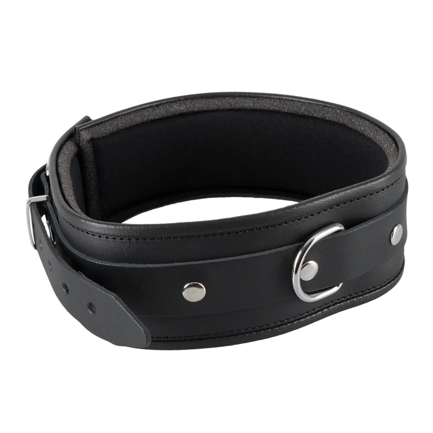 Zgardă bondage din epidermă normală cu inel metalic și cataramă reglabilă la spate. material piele naturală groasă.