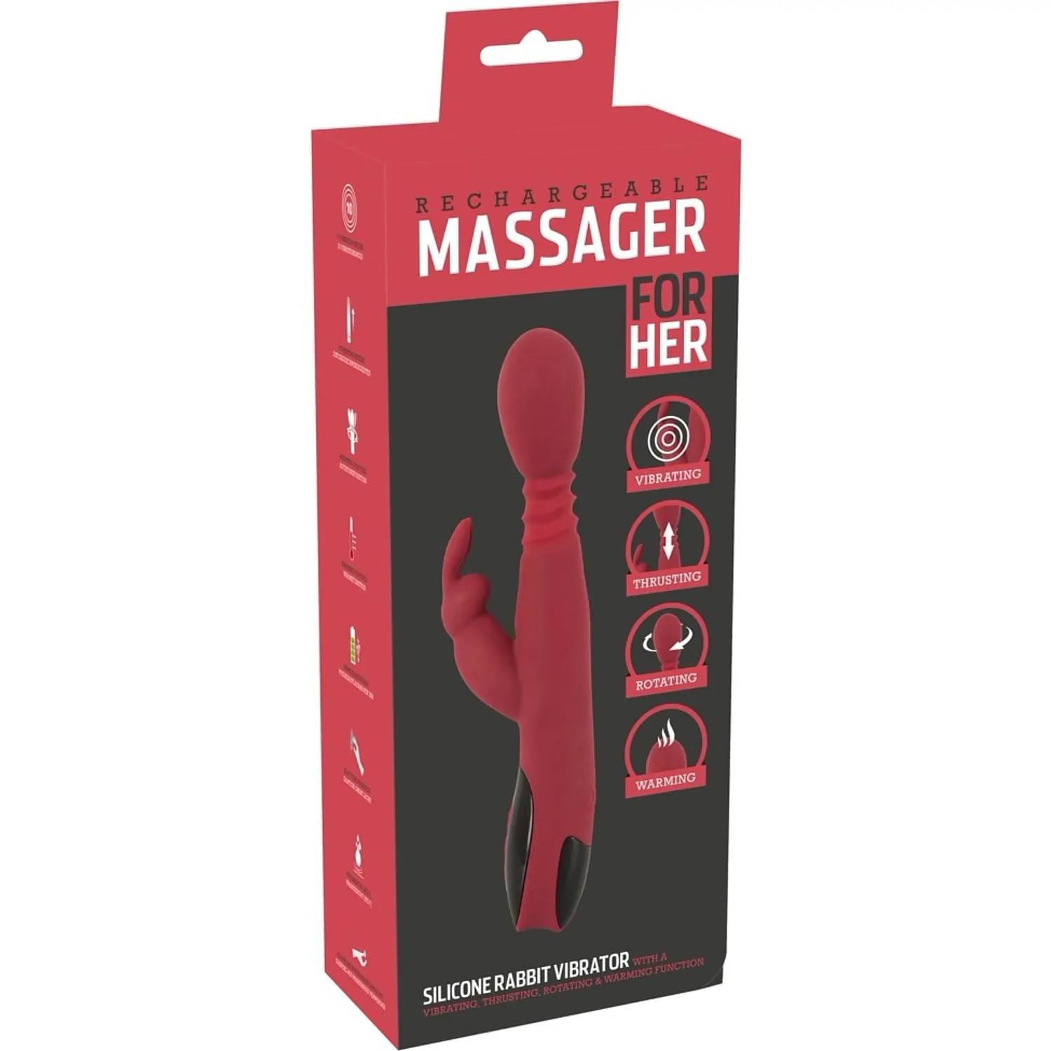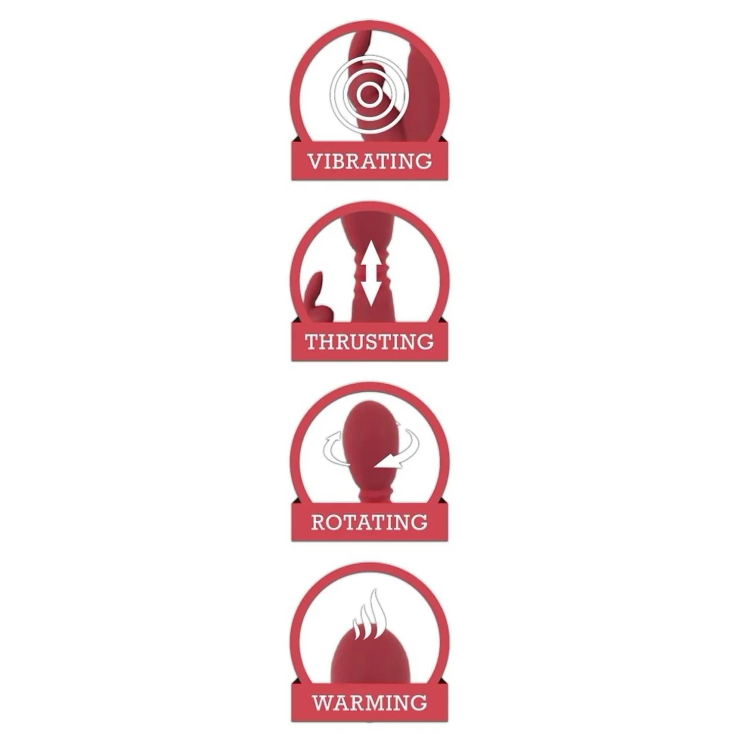 Acest iepuraș va crește căldura! Acest vibrator rabbit de culoare roșu aprins cu componente decorative frumoase negre va aprinde un foc de plăcere. Transmite o stimulare precisă a vaginului și a punctului G. Stimulatorul pentru clitoris în aspect de iepuraș este echipat cu urechi mobile sensibile. Are 10 chipuri de vibrații și 3 nivele de tracțiune / întoarcere din care să alegi. Vibratorul se simte mai realist decât aproape toate celelalte jucării sexuale din pricina funcției de încălzire până la 42 grade C. Este trainic la apă și poate fi reîncărcat cu cablul USB inclus.