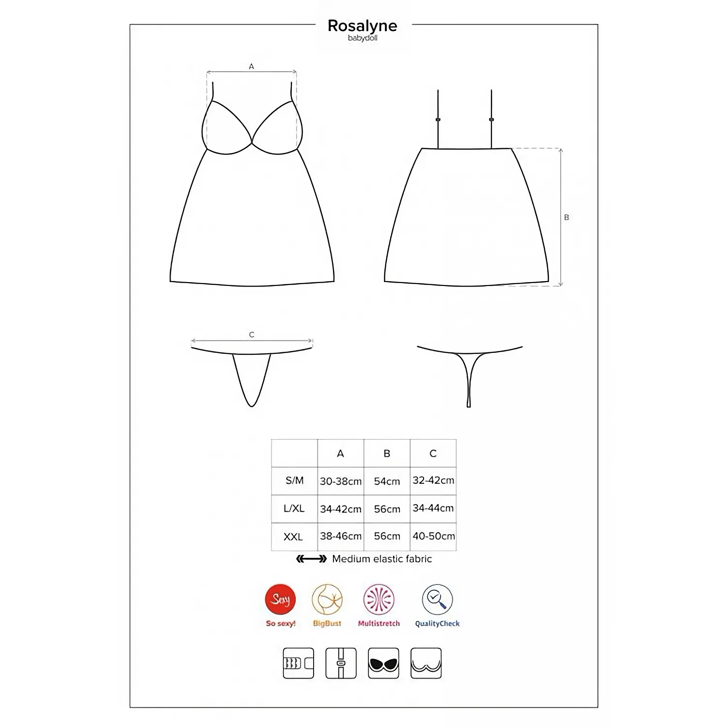 Babydoll Obsessive Rosalyne Roșu este lucrat dintr-o țesătura cu elasticitate.