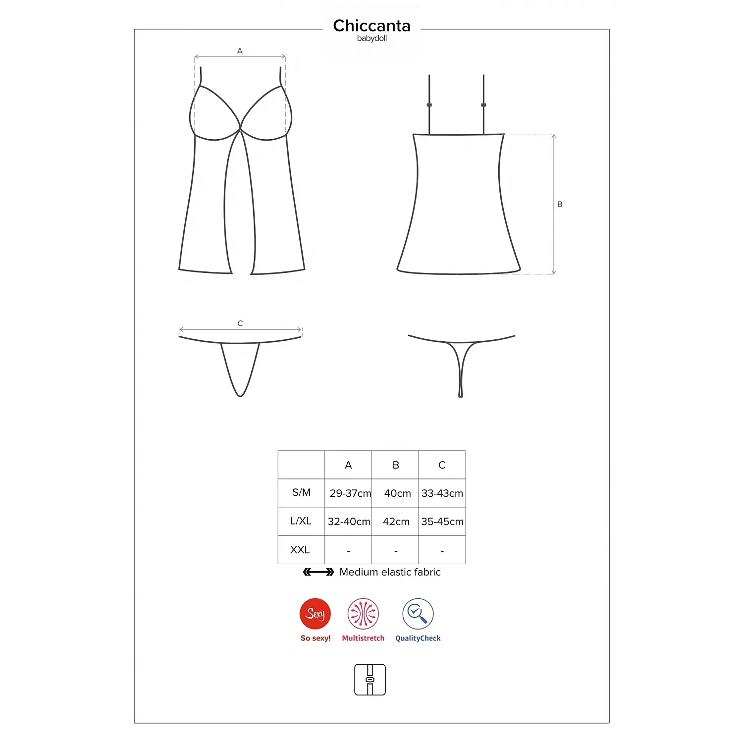 Babydoll Obsessive Chiccanta Negru este o piesă de lenjerie uluitoare și extrem plăcută, inventată și fabricată de importantul brand de lenjerie Obsessive din Polonia.