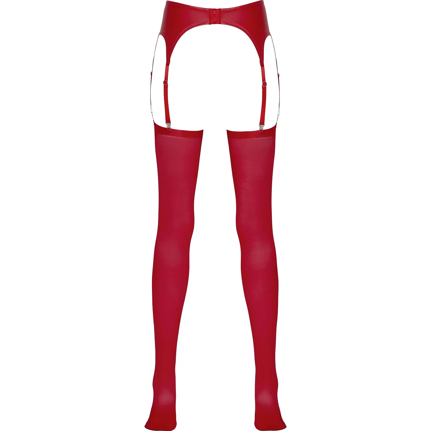 Roșu aprins! Un portjartier clasic concepută dintr-un material elegant cu aspect mat. Cu componente metalice de culoare argintie și 3 bande de suspensie pe parte. Ciorapii roșii potriviți sunt incluși. Un adevărat must-have pentru seducătoare. Poate fi purtat cu diverse ținute. Cu bretele reglabile. Portjartier Cu Dresuri No:Xqse Suzie Roșu este confecționat dintr-o țesătura cu proprietăți elastice.