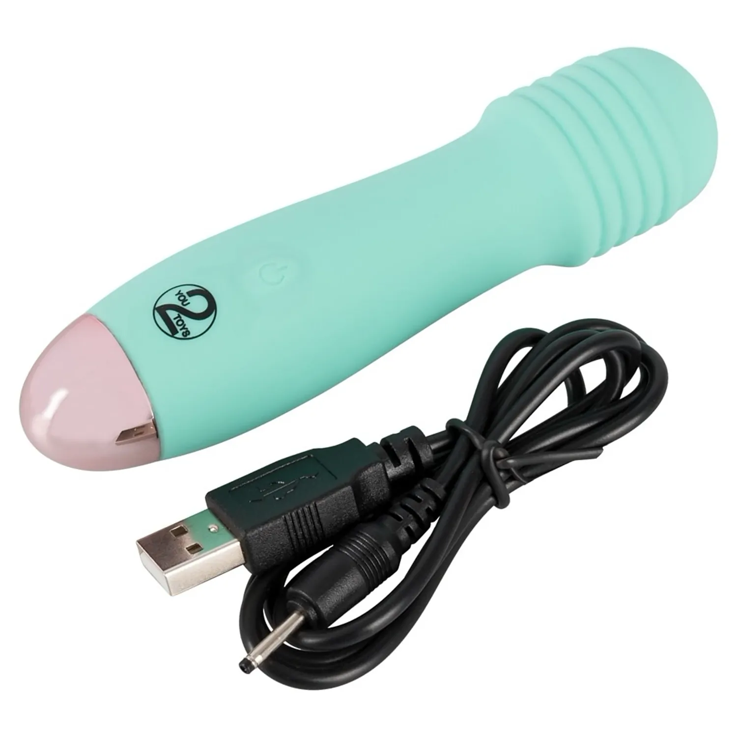 Mini vibrator verde cu o structură euforică cu canelură la cap. Are 7 feluri de vibrații distincte și poate fi reîncărcat cu cablul USB inclus. Manevrare ușoară și estetică elegant.