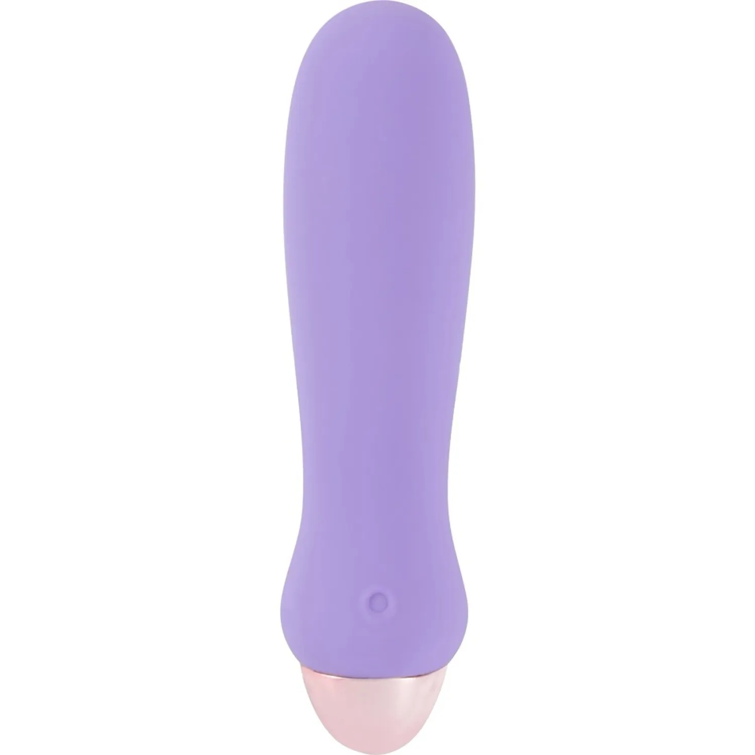 Mini vibrator violet cu o indentație convexă la capătul arborelui. Are 7 moduri de vibrații și poate fi reîncărcat cu cablul USB inclus. Manevrare ușoară și design elegant.