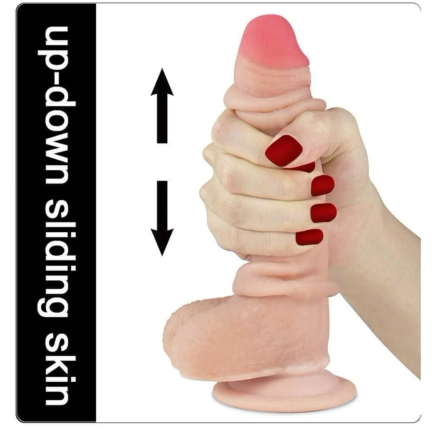 Produsul Sliding Skin Cu Ventuză 17.5cm este făcut din material TPE de înaltă calitate cu dublă densitate. Acesta împreunează o textură exterioară mătăsos cu o consistență fermă în interior, imitând senzația pielii umane. Se poate modela cu ușurință în diverse forme.