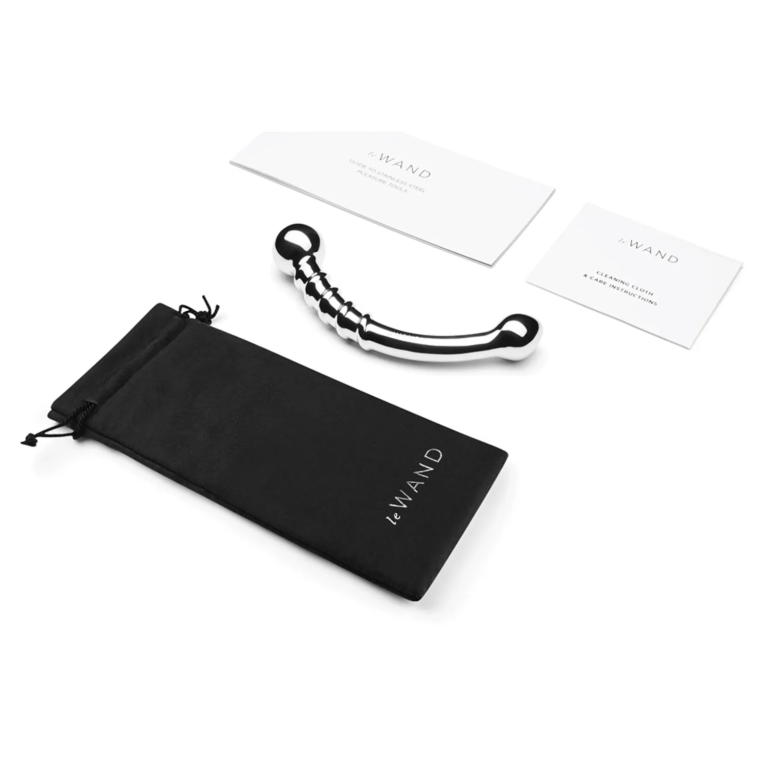 Dildo Metal LE WAND Stainless Steel Bow, dispozitiv de plăcere cu două fețe. Desăvârșit curbat pentru o atingere profundă, fără efort.