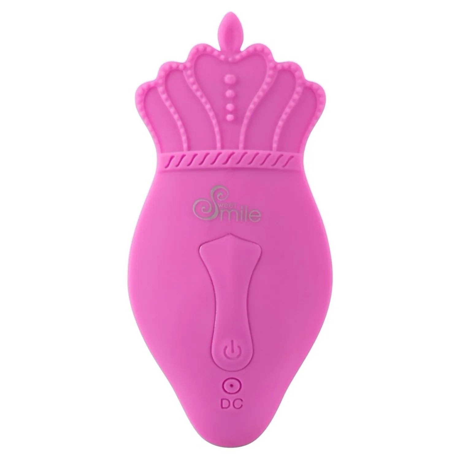 Vibratorul gingaș cu un ax în siluetă de mădular și gland ușor. Suprafața inovatoare și ușor amplificată cu puncte, îngăduie raportul direct cu clitorisul sensibil. Vibrator punct G Panty Sweet Smile incită în același timp punctele G, vaginul și clitorisul cu cele 10 chipuri puternice de vibrații. Vibratorul poate fi purtat în lenjerie foarte discret. Poate fi controlat la apăsarea unui buton sau prin intermediul telecomenzii. Reîncărcabil cu cablul USB inclus.