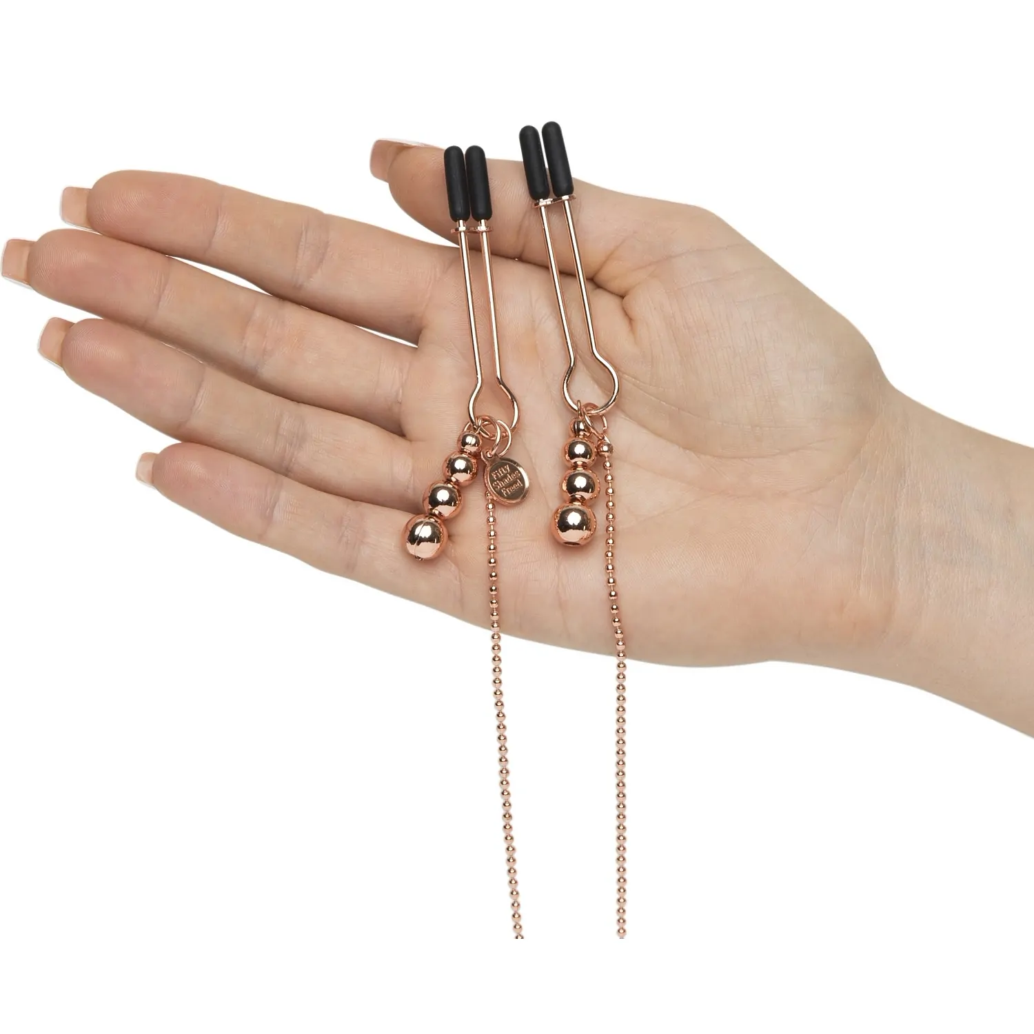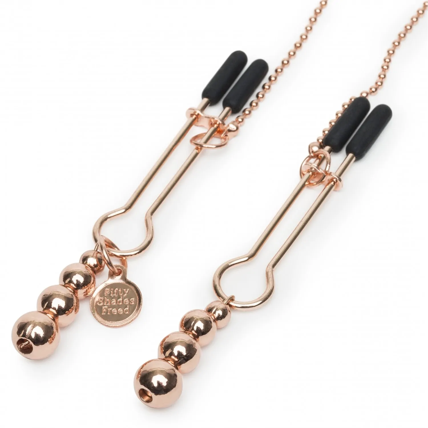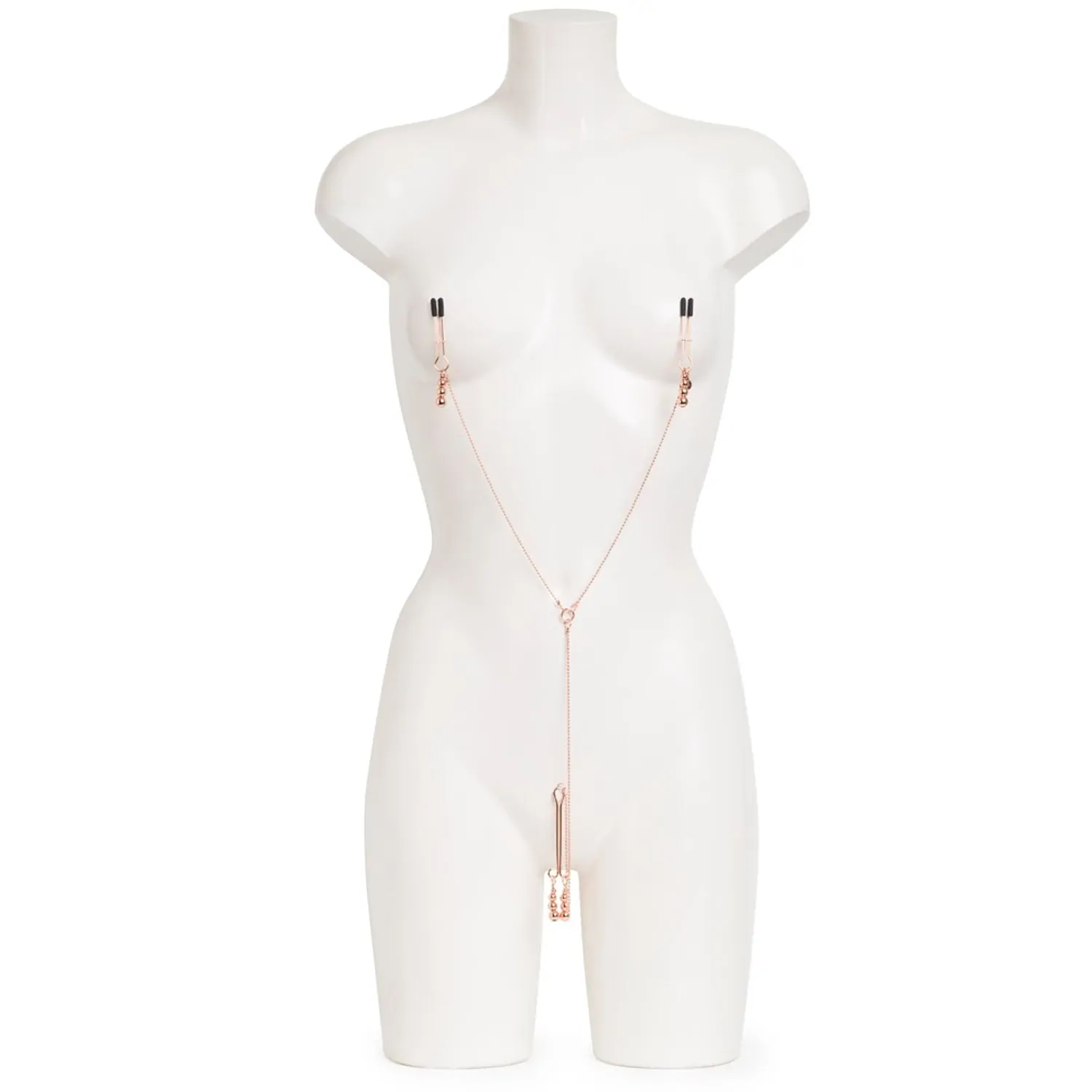 Descoperiți fiorul senzației care ocupă un loc dulce între satisfacție și durere și bucurați-vă de un nou nivel de joc senzorial și emoție. Uzați clemele de tip mamelă reglabile, cu vârf de silicon și clemă de clitoris glisantă, pentru a aplica un vârf și o apăsare rafinată pe locurile tale cele mai sensibile.